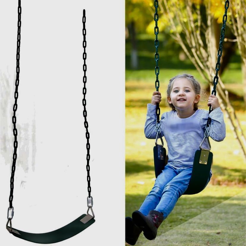 ビニールコーティングチェーン付きブランコ(スイングシート)の出品です。1.プラスチック樹脂製の座面で、座るとお尻を包み込んで安定するように設計されています。