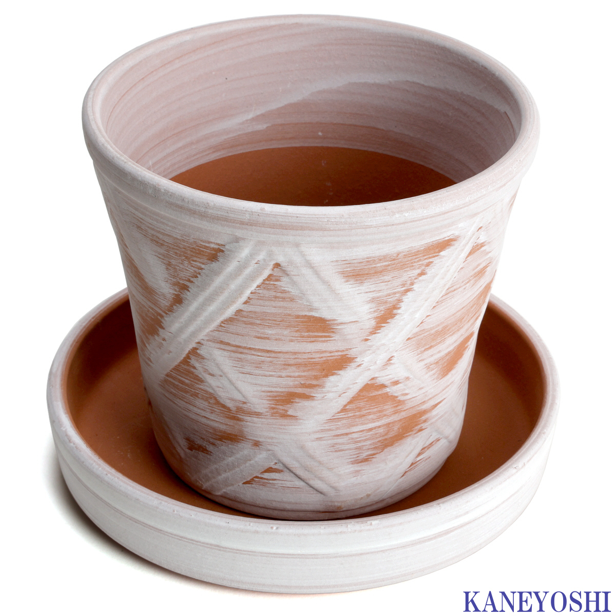 ハーブのかおり ホワイトビスクは、赤土から生地を作り、白の化粧土をろくろの上で