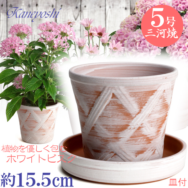 受皿付 植木鉢 おしゃれ 安い 陶器 サイズ 15cm ハーブのかおり 5号 ホワイトビスク & MA受皿5号 ホワイトビスク付 室内 屋外