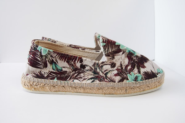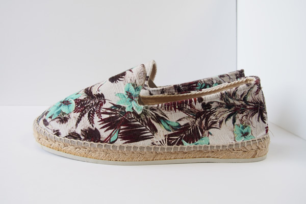 このエスパドリーユは、得意のファブリック使いをスリッポンに落とし込んだもの。