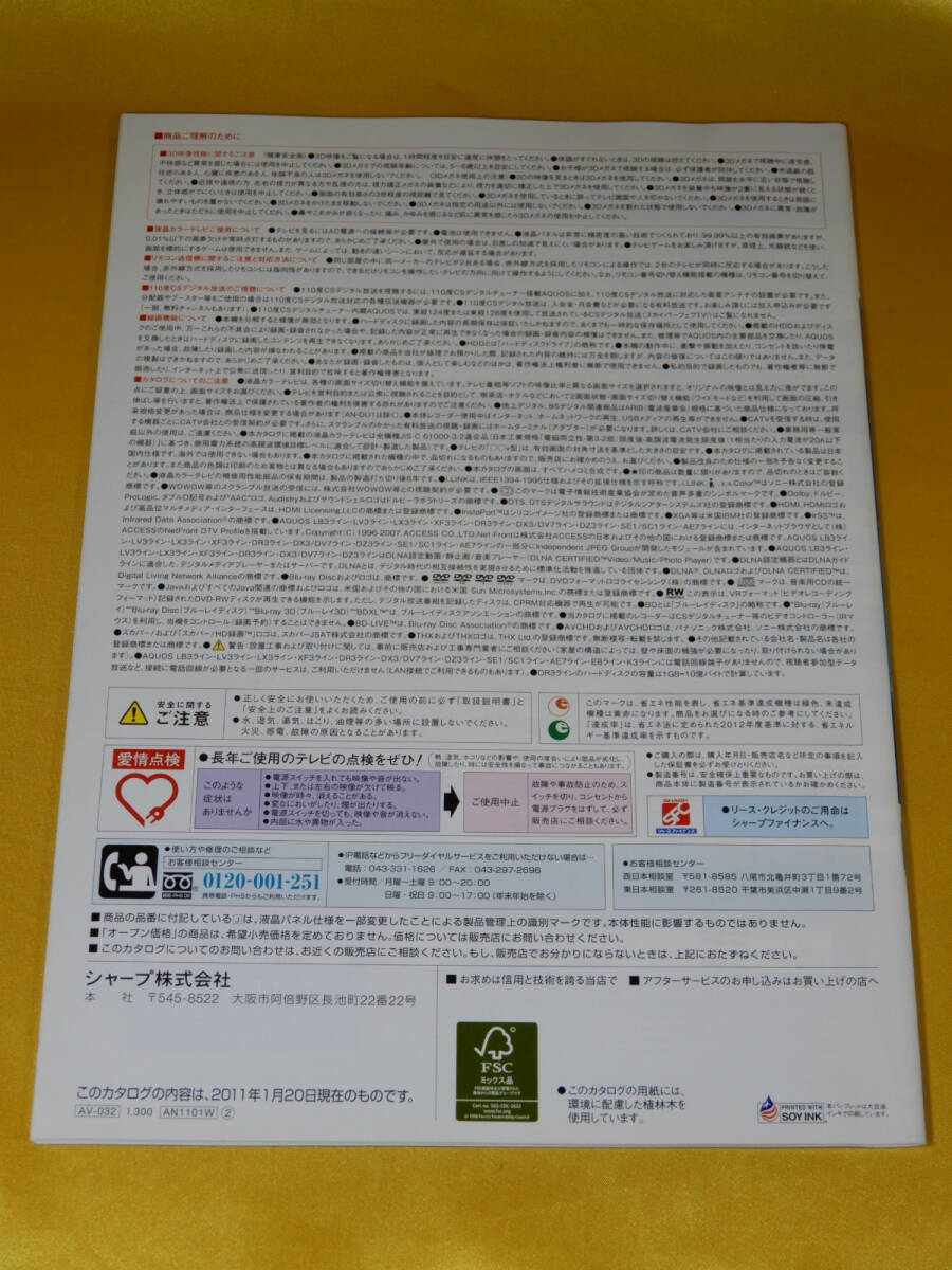 ☆シャープ カタログ☆ 2011/1月 シャープ SHARP 液晶カラーテレビ 総合カタログ