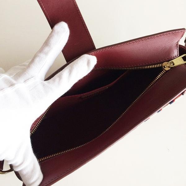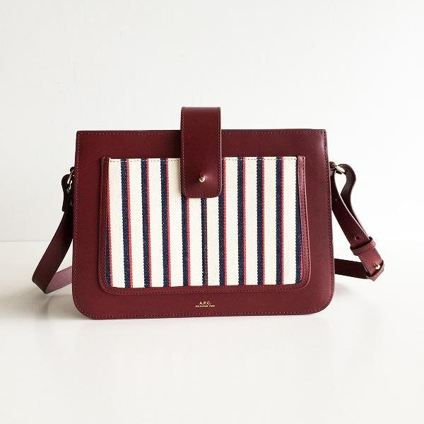 A.P.C. アーペーセー Albane レザーショルダーバッグ/ワインレッド スムースカーフスキンレザー ストライプ【2400011929778】