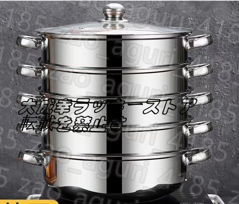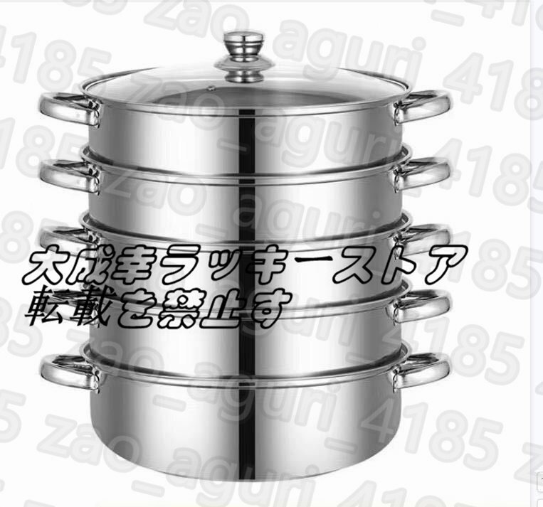 蒸鍋34cm「5層」対応熱源:IH対応 各種熱源対応 ガラス鍋蓋付 中華 肉まん 蒸し器