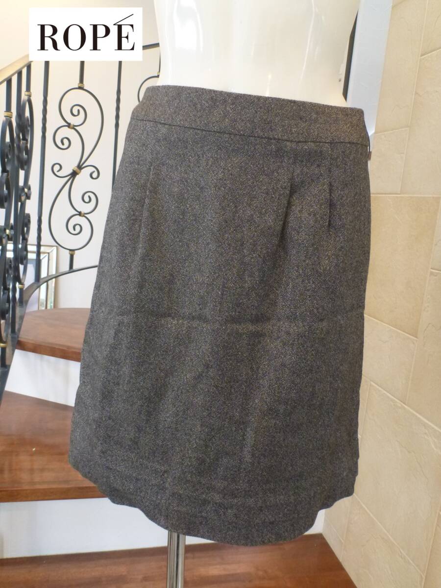 美品 ROPE ロペ ★ブラック系ツイード 裾フリル タイトスカート 7 S相当