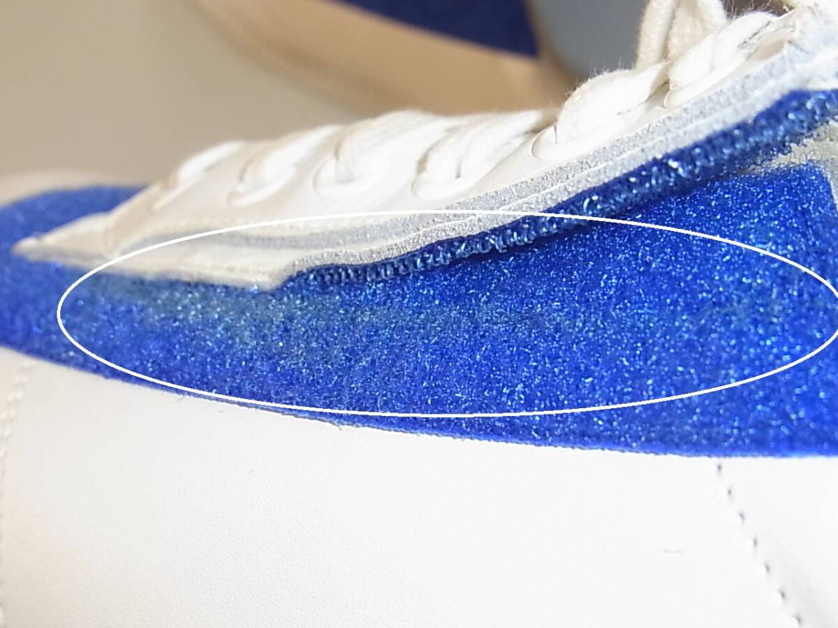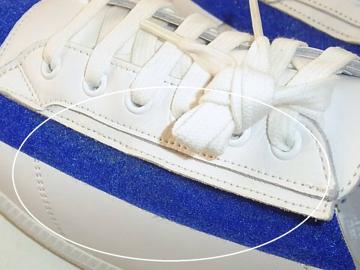 タンの部分は、端から7cm位まで画像のように開閉が可能ですが、左足側のベルクロが重なるきわの部分が少し変色しています。画像でご確認ください。(白いレザー部分には問題はありません)履いていて目立つものではありませんが、気になる場合はご入札はご遠慮くださいますようお願い致します。お手数ですが、必ず画像などよくご確認のうえご検討をお願いします。ご納得いただける方のみご入札下さいますようお願い致します。又、元は箱が付属しておりましたが、壊れてしまったため処分しましたのでお付けできません。