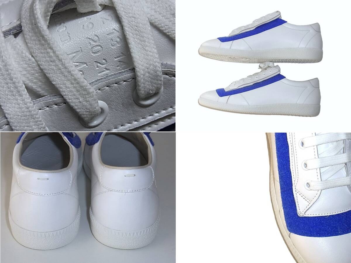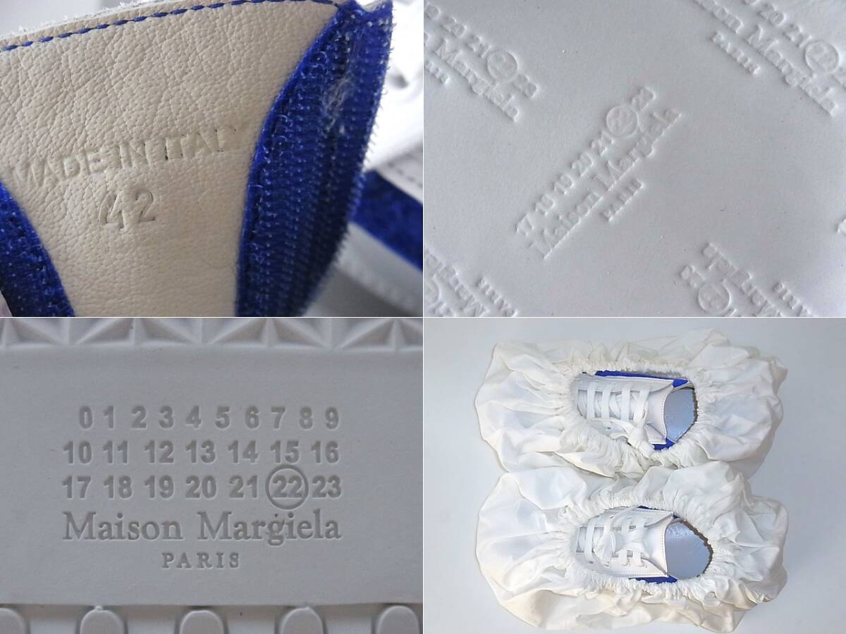Maison Margiela メゾンマルジェラ サイズ42 白青 ホワイト ブルー ベルクロ レザー スニーカー シグネチャーステッチ【未使用】