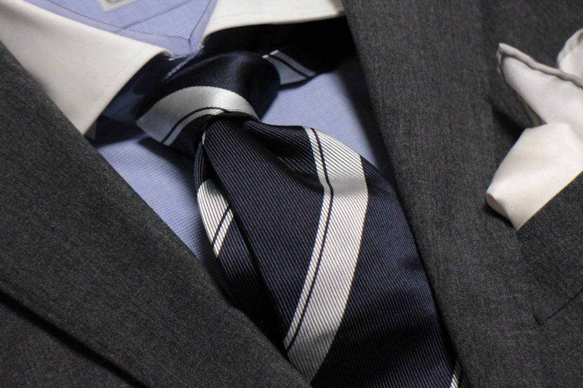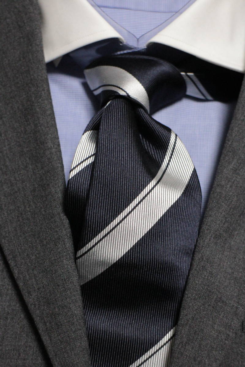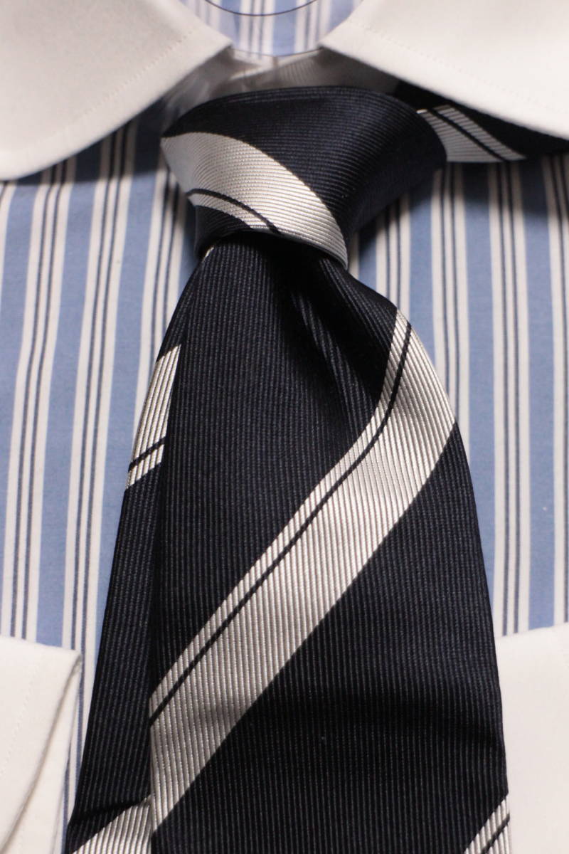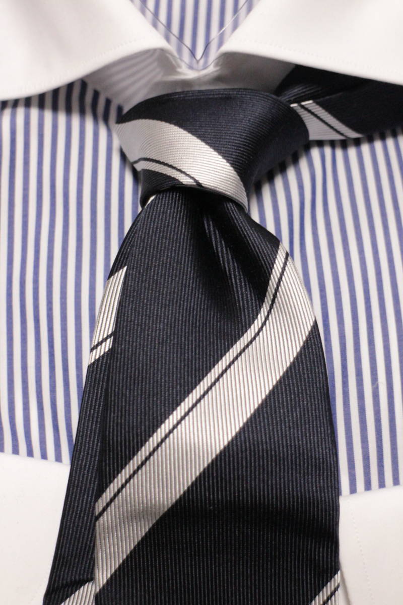 ネイビーやグレースーツとの相性最高、とても使い易いレジメンタルですので、