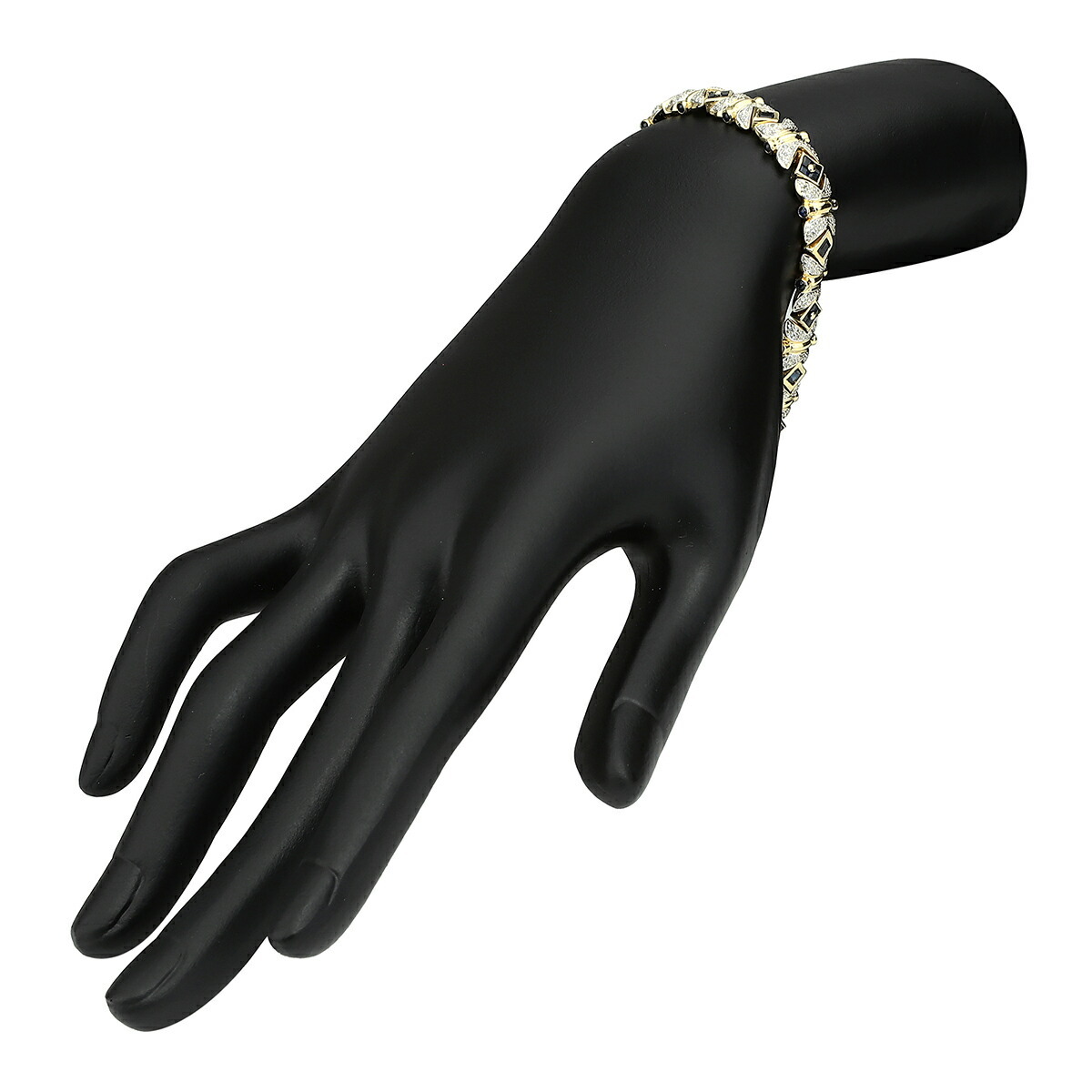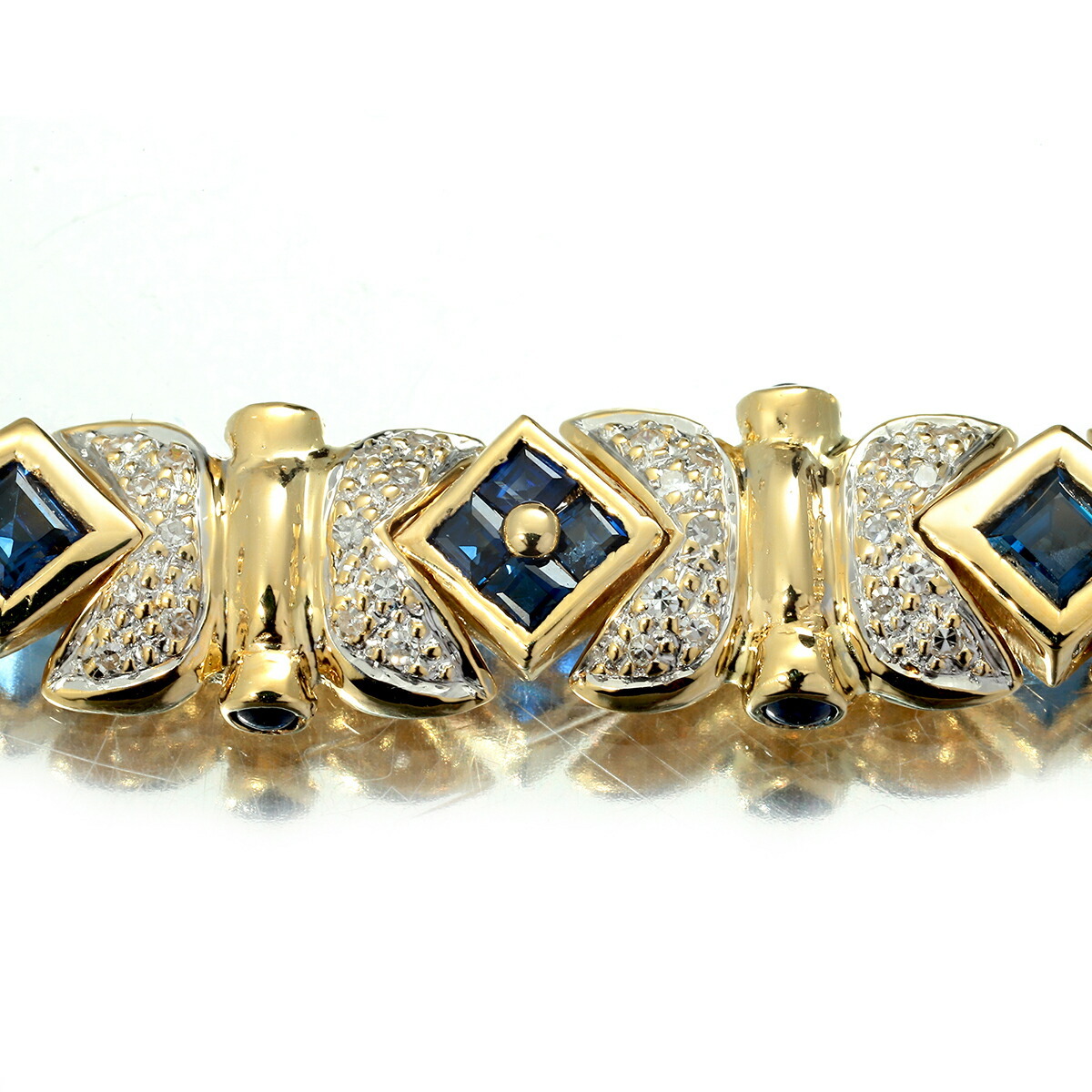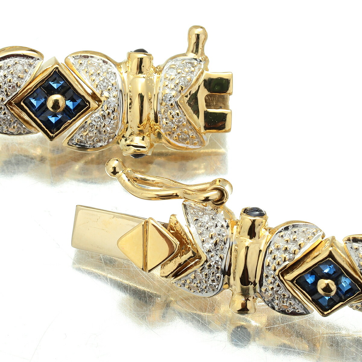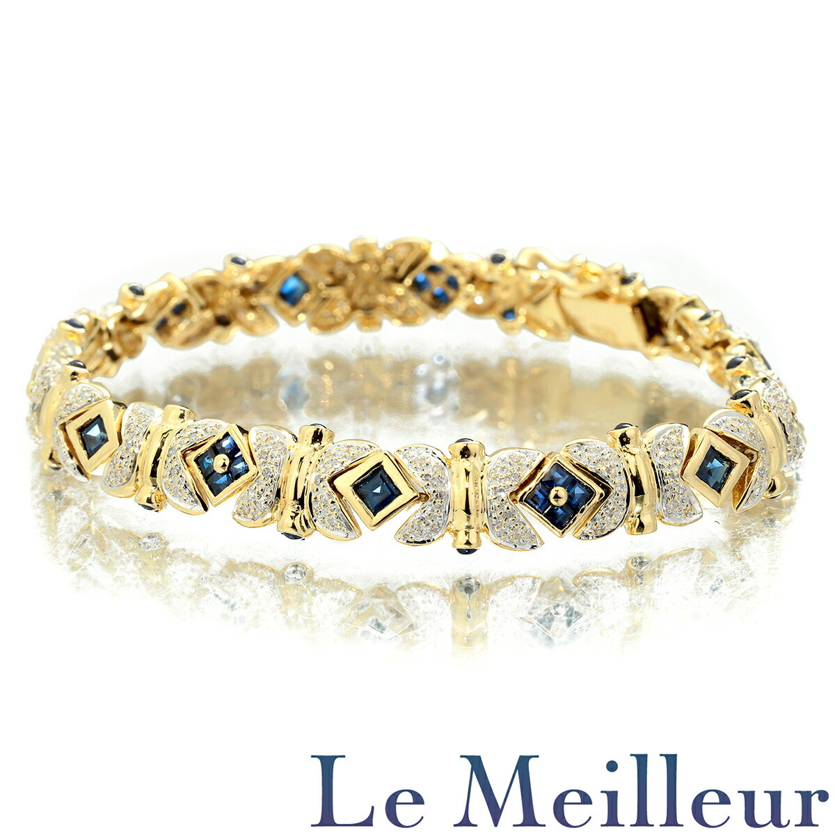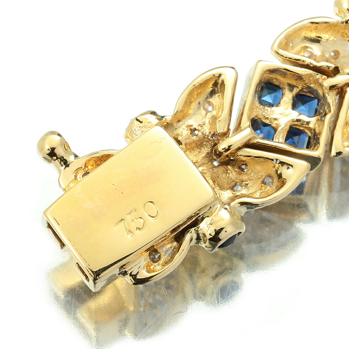 深みのある発色と輝きが魅力のブルーサファイヤとダイヤモンドのブレスレット。個性的なデザインがしっかりとした存在感で手元を華やかに飾ってくれます。