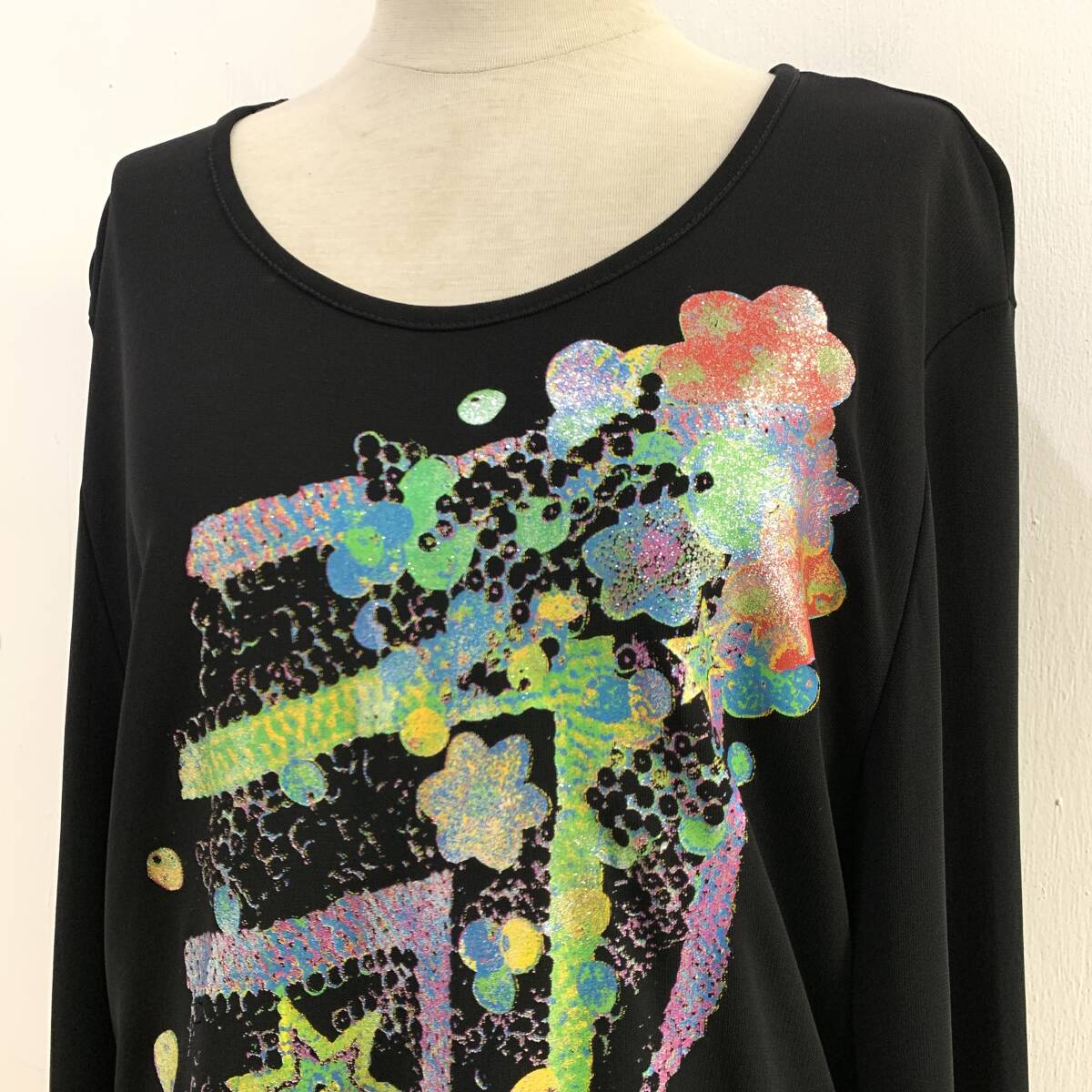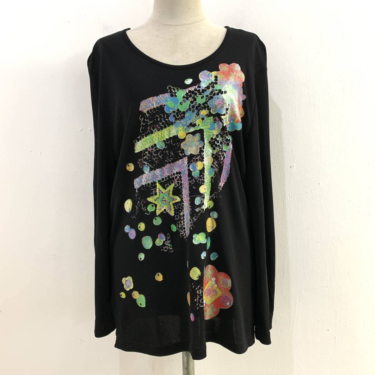 ☆訳あり CHRISTIAN LACROIX Bazar クリスチャンラクロア バザール Vintage 長袖カットソー ラメ ブラック【レターパックプラス郵送可】K