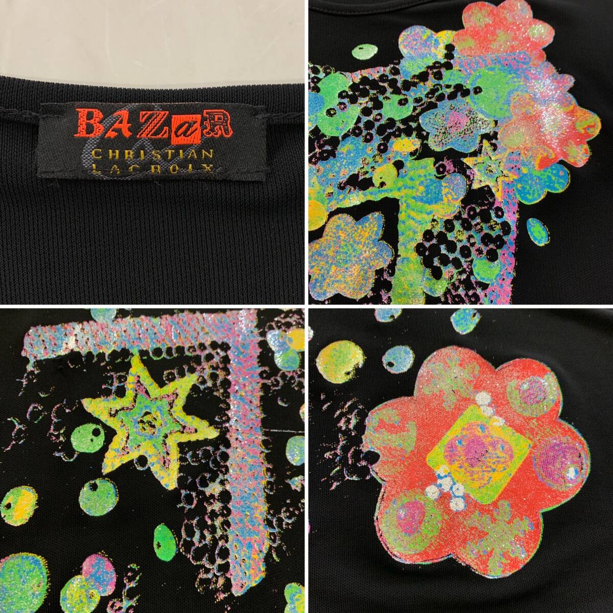 ☆訳あり CHRISTIAN LACROIX Bazar クリスチャンラクロア バザール Vintage 長袖カットソー ラメ ブラック【レターパックプラス郵送可】Kの出品です。