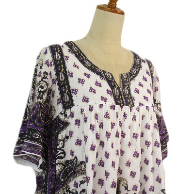 グリーンレーベルリラクシング ユナイテッドアローズ green label relaxing カットソー フレア ペイズリー 総柄 キーネック 五分袖 白 ホワイト レディース