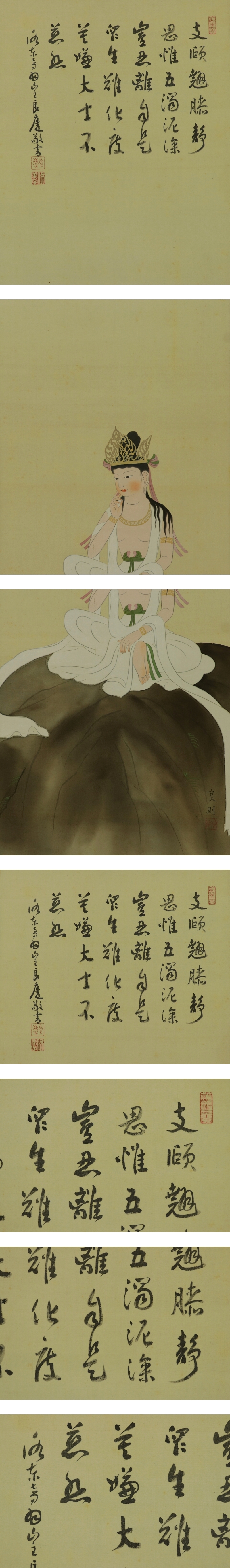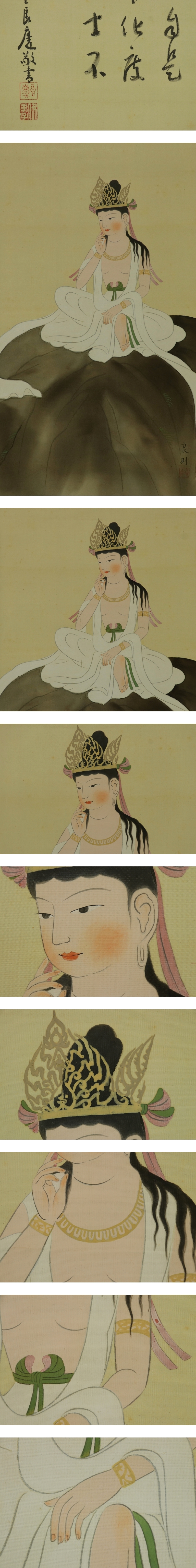 | №2405004a 希少【模写】石島良則・大西良慶賛【岩上観音】◆絹本◆共箱◆掛軸 | |