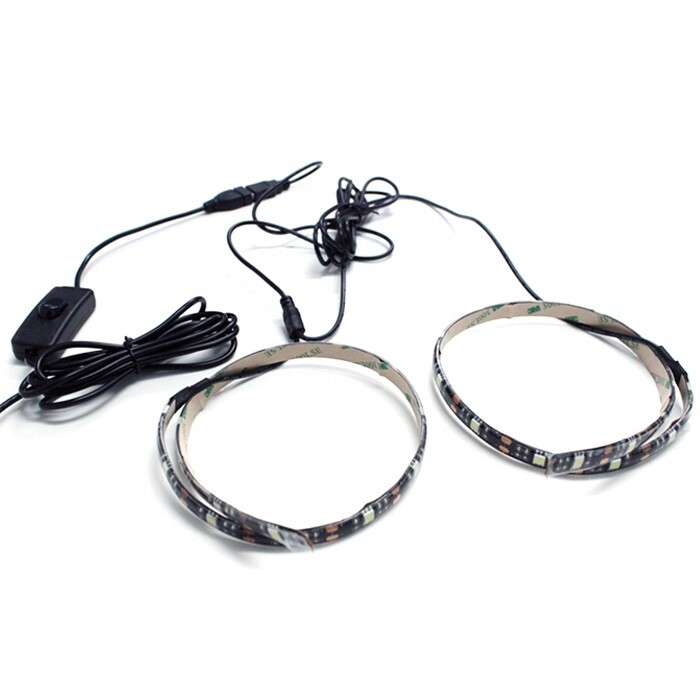 USBを挿すだけで使用できる防水3チップ LEDテープライトにオン・オフのスイッチ(延長ケーブル1.8m)が付いたお得なセット品です。 お部屋でも車でもUSBソケットが挿せる環境ならどこでも簡単に使用できます。 | |