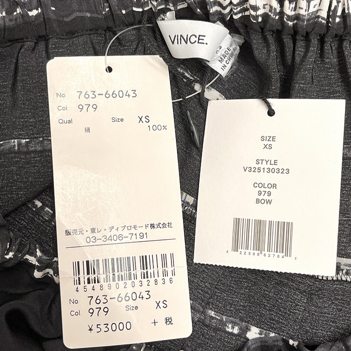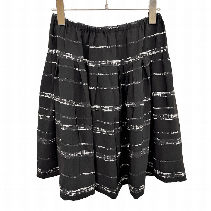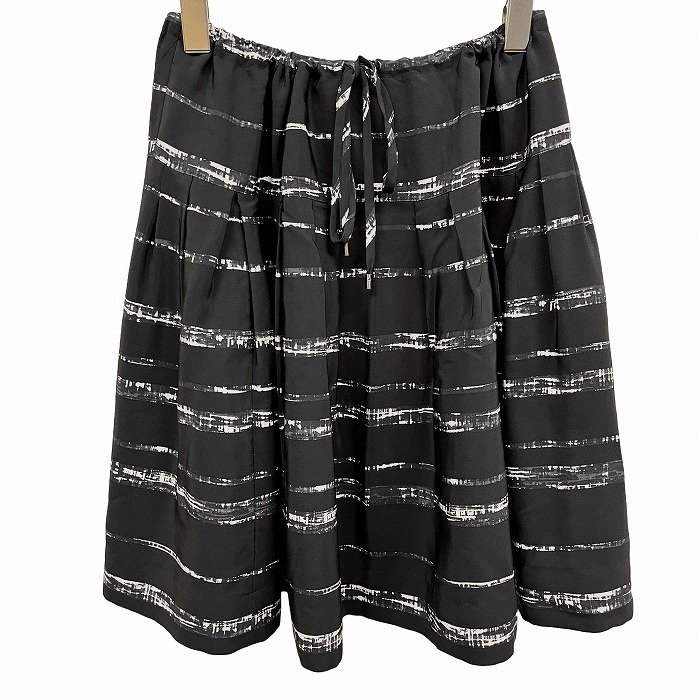 | 商品タイトル | ヴィンス 【新品】VINCE. 薄手 スカート ウエストにゴムと紐 ボーダー 裏地無し ひざ丈 絹100% シルク100% XS ブラック 黒×白 レディース |