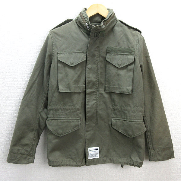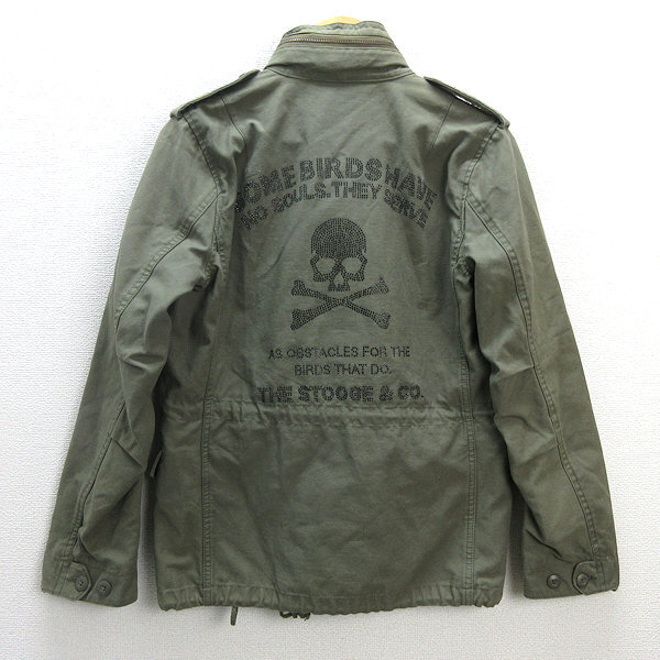 H■ストゥージ&コー/STOOGE&CO スカルラインストーン柄 ミリタリージャケットJKT【S】カーキ/MENS■13【中古】