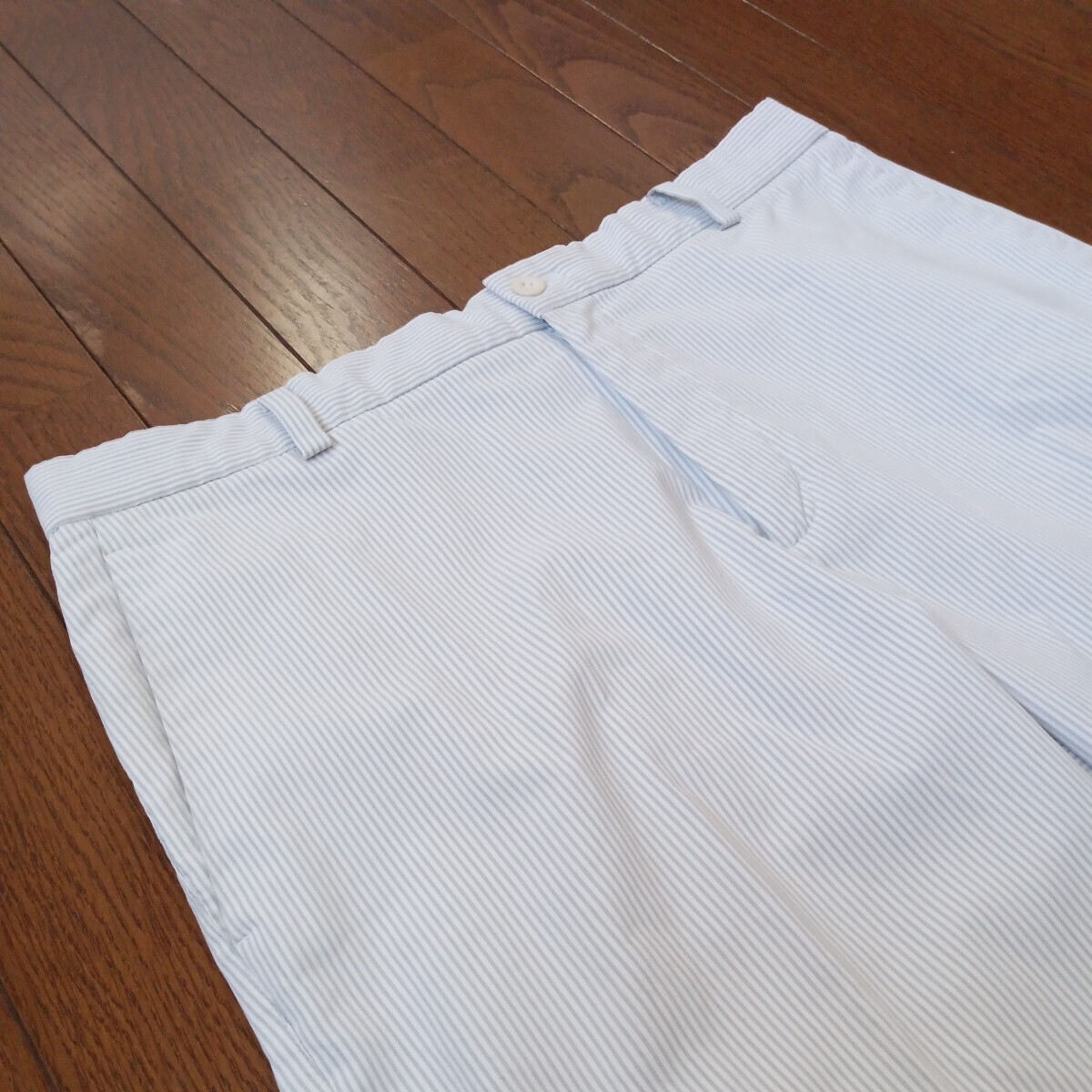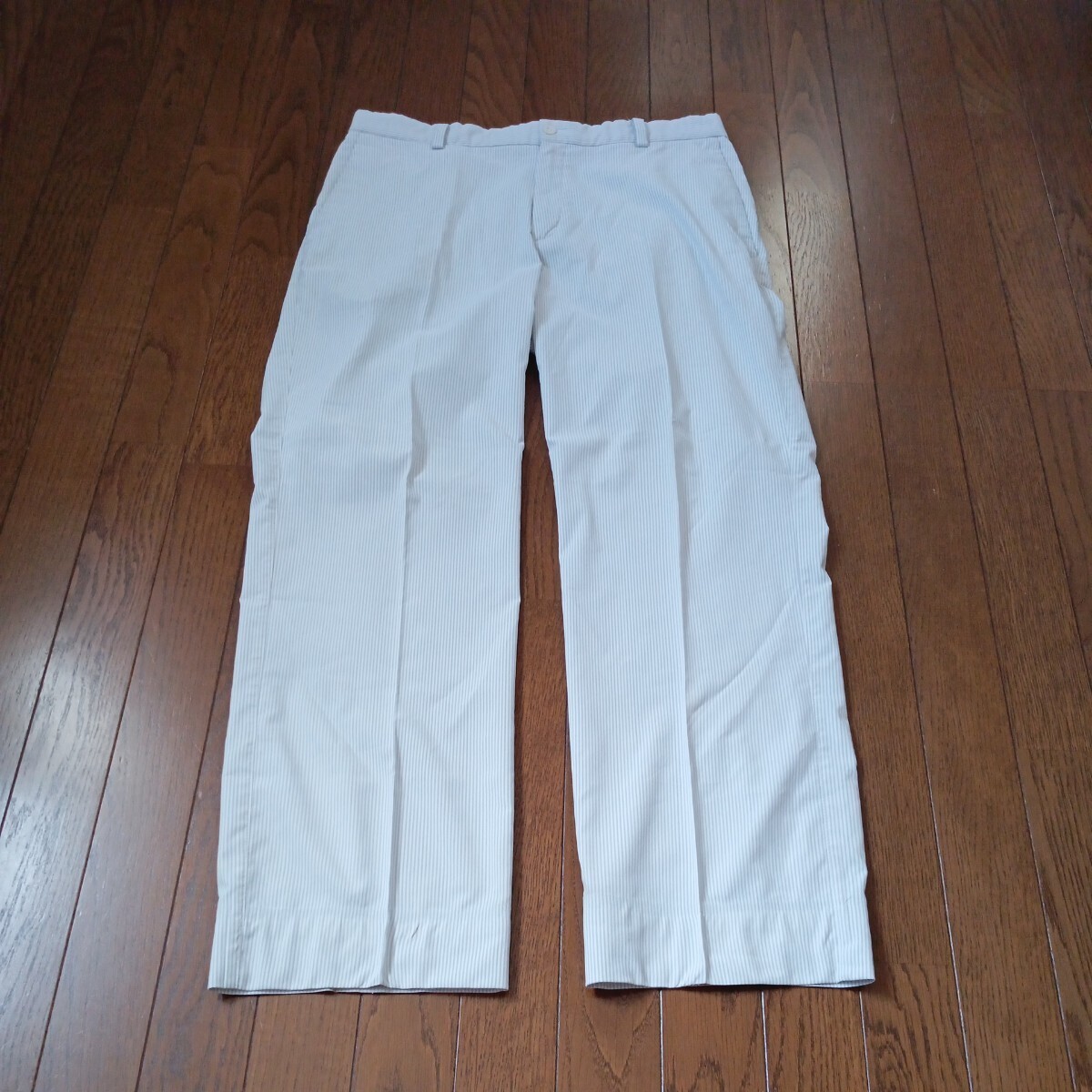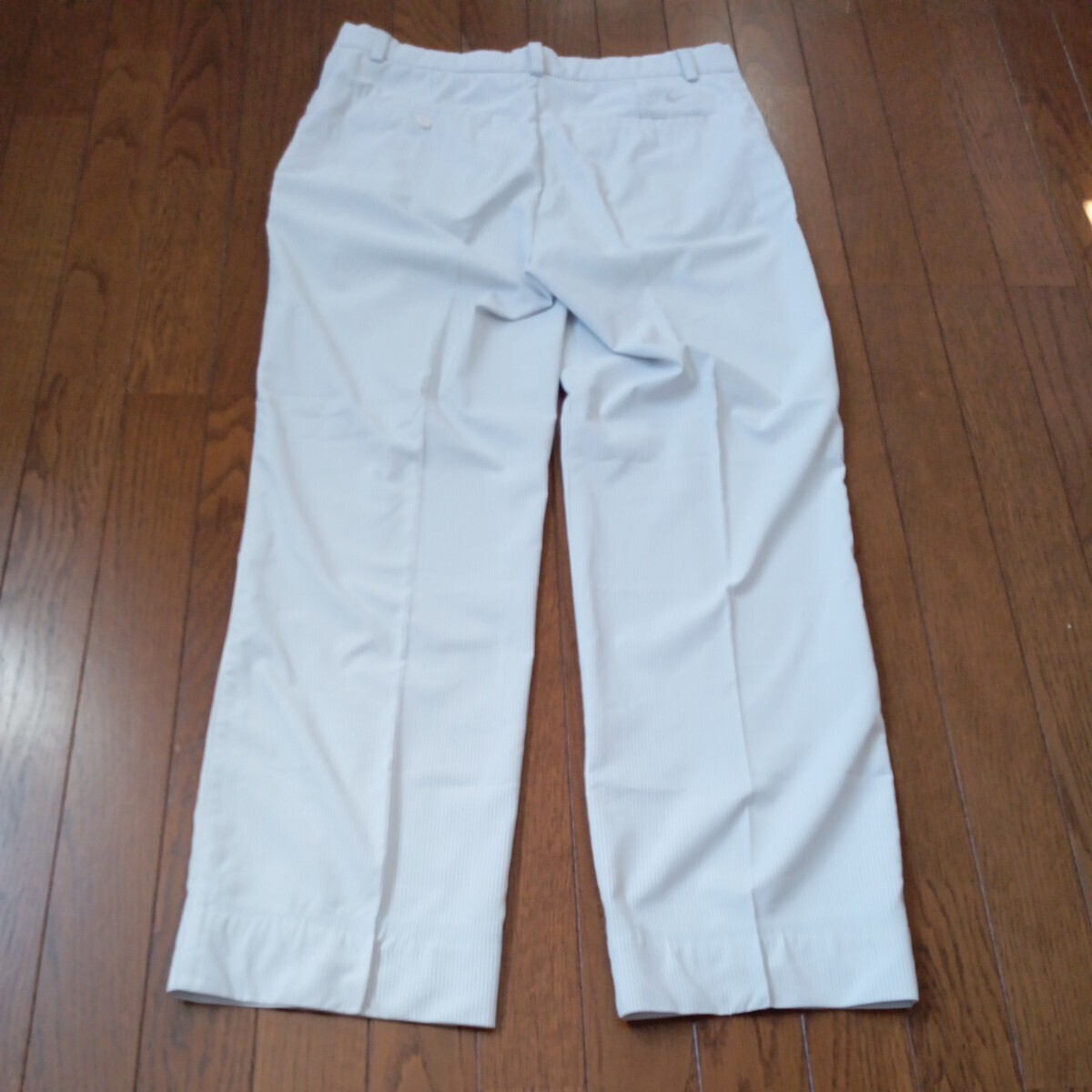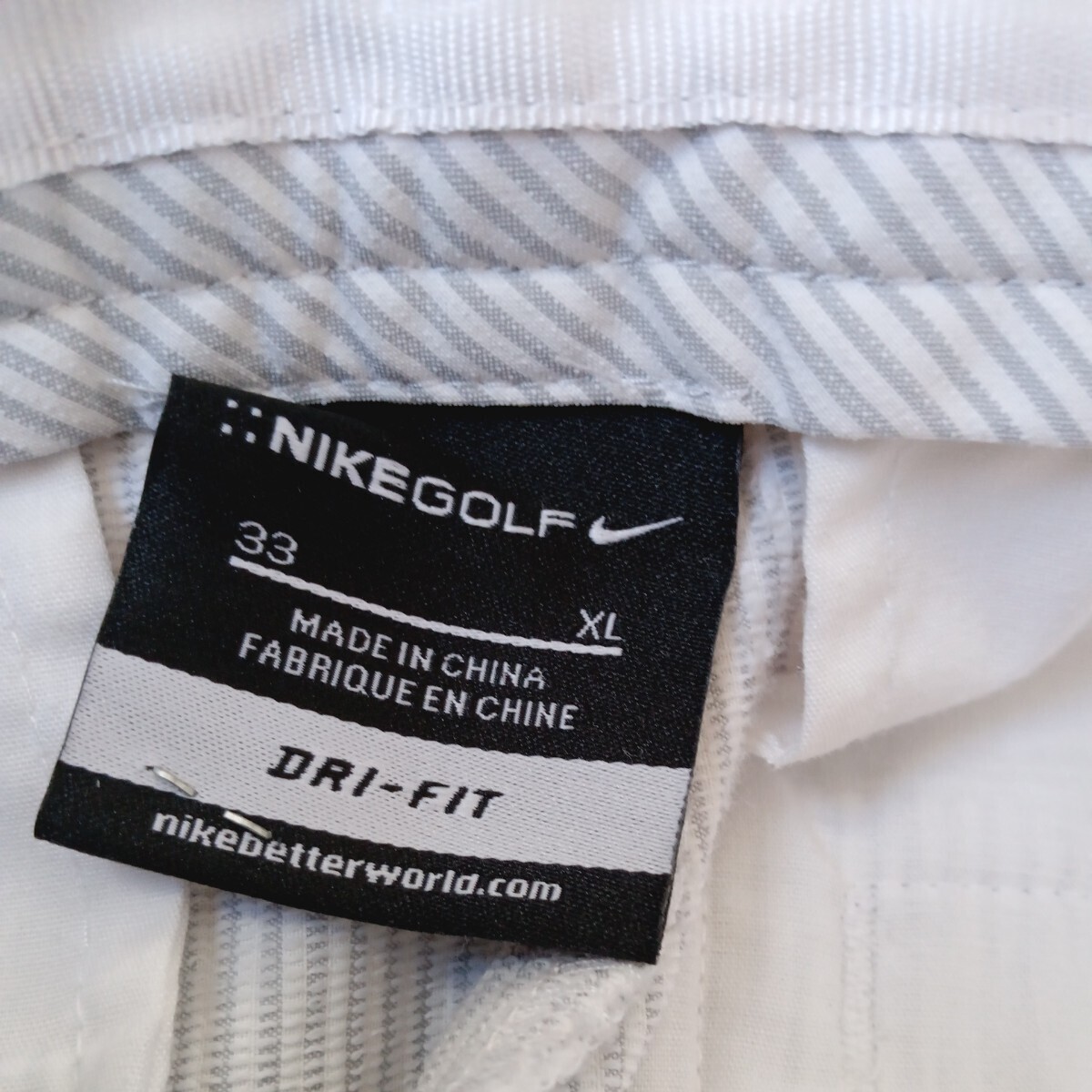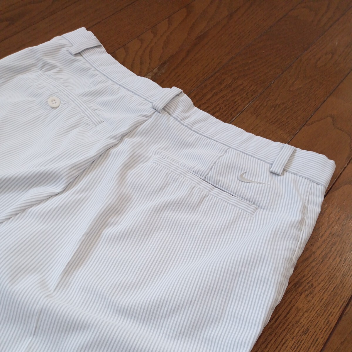 K-210【中古】NIKE GOLF ナイキゴルフ ゴルフウェア ロングパンツ 夏用 白グレー ストライプ 右後にナイキの刺繍 メンズ サイズ XL