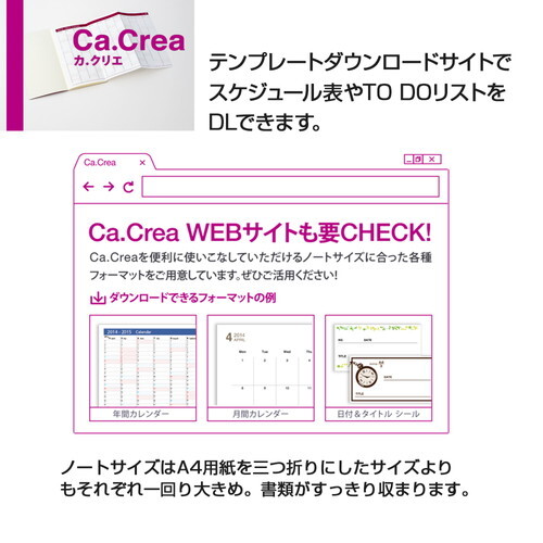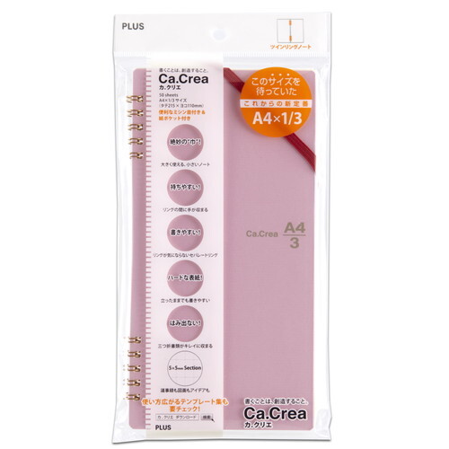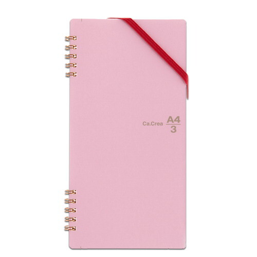 カ・クリエのツインリングタイプ。立ったままでも書きこみやすいセパレートリング。四隅は丸くカット。ゴムバンド付。PPシートカバー(表紙)付。表紙にあわせたポケット付き。