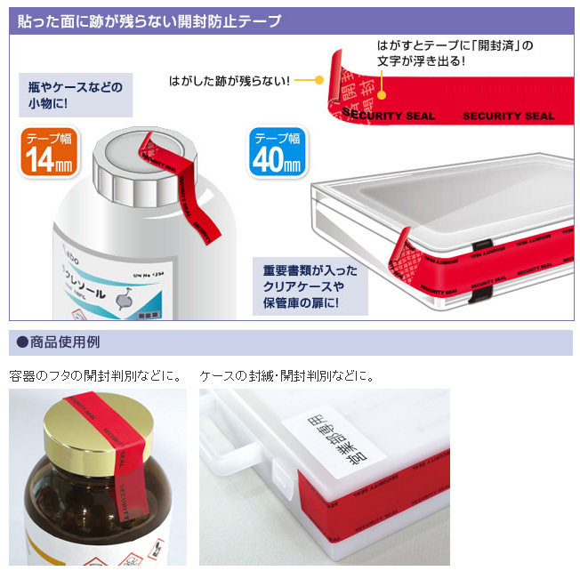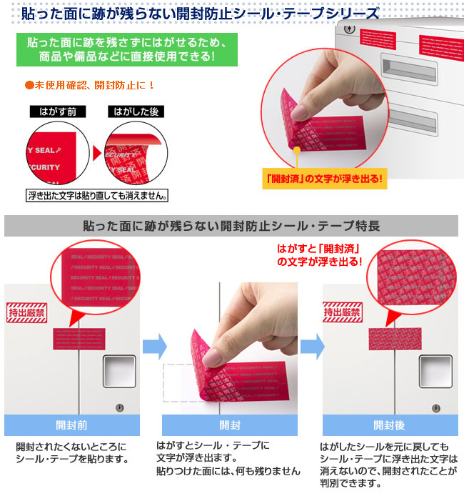 はがすとテープに「開封済」の文字が浮き出るので一目で開封したことが判別できます。
