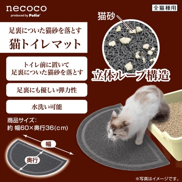 足裏に優しい弾力性のある、手洗い可能なマット。トイレ前に置いて足裏についた猫砂を落とします。