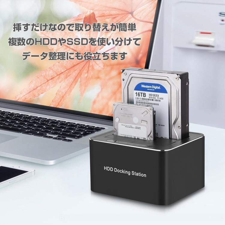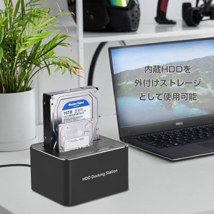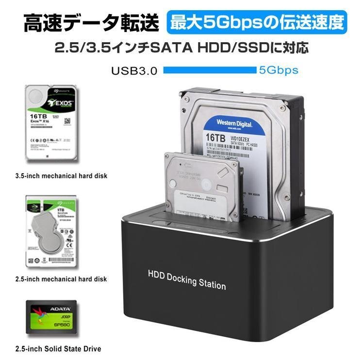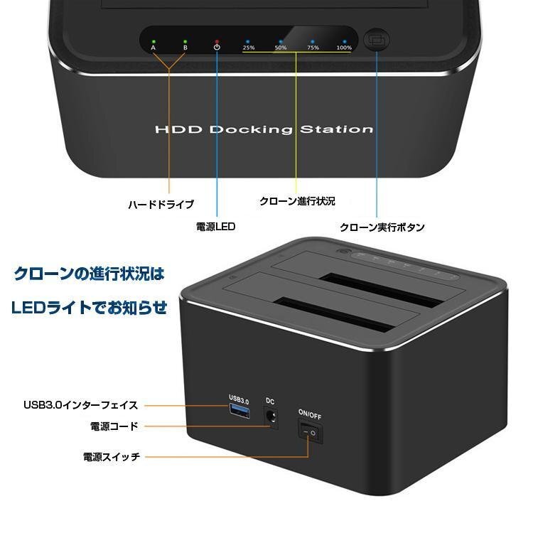 HDDクローンスタンド デュプリケーター 2台格納 パソコン不要 バックアップ クレイドル SATA HDD/SSD 2.5/3.5インチ USB3.0