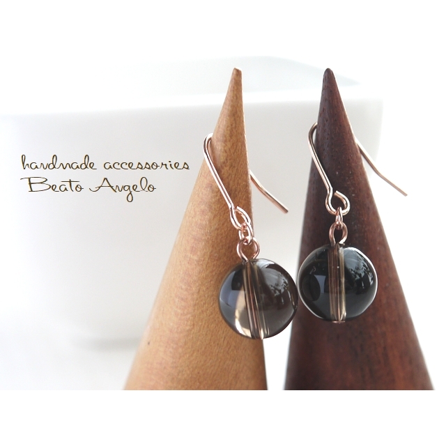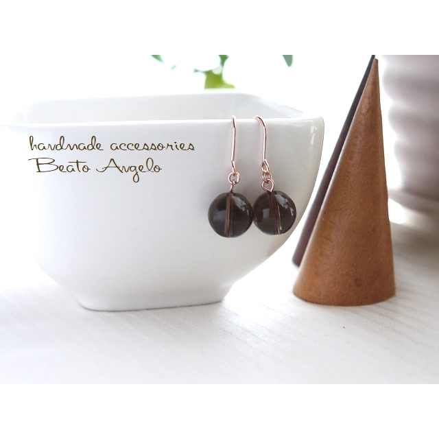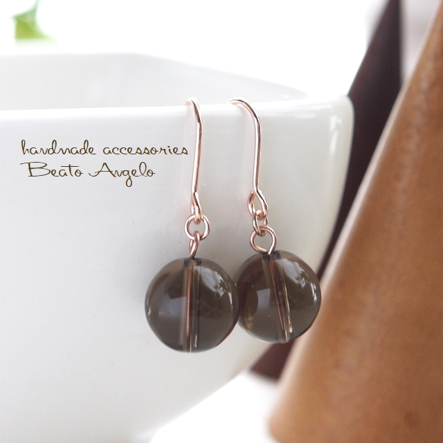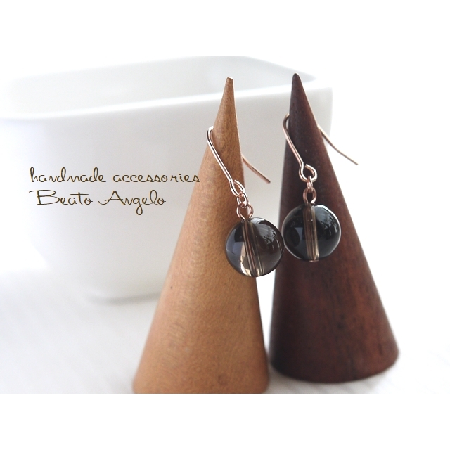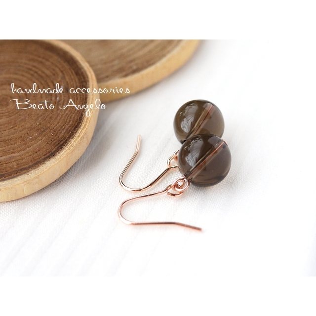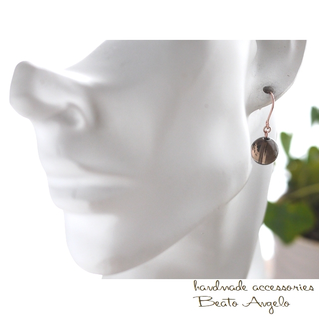 天然石スモーキークォーツの一粒ピアス(p-350)PG