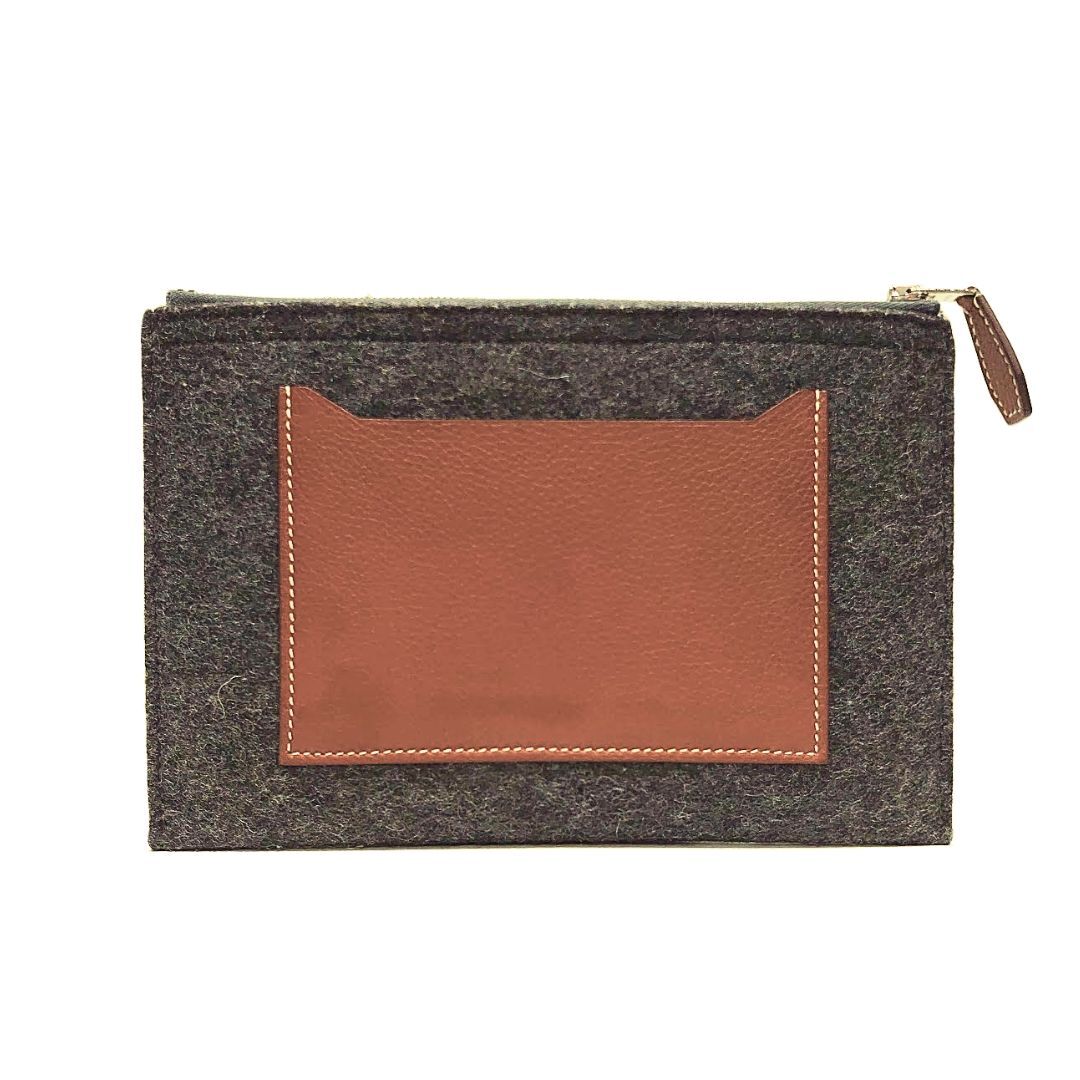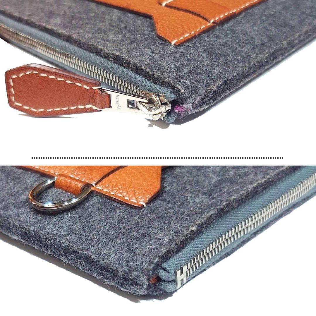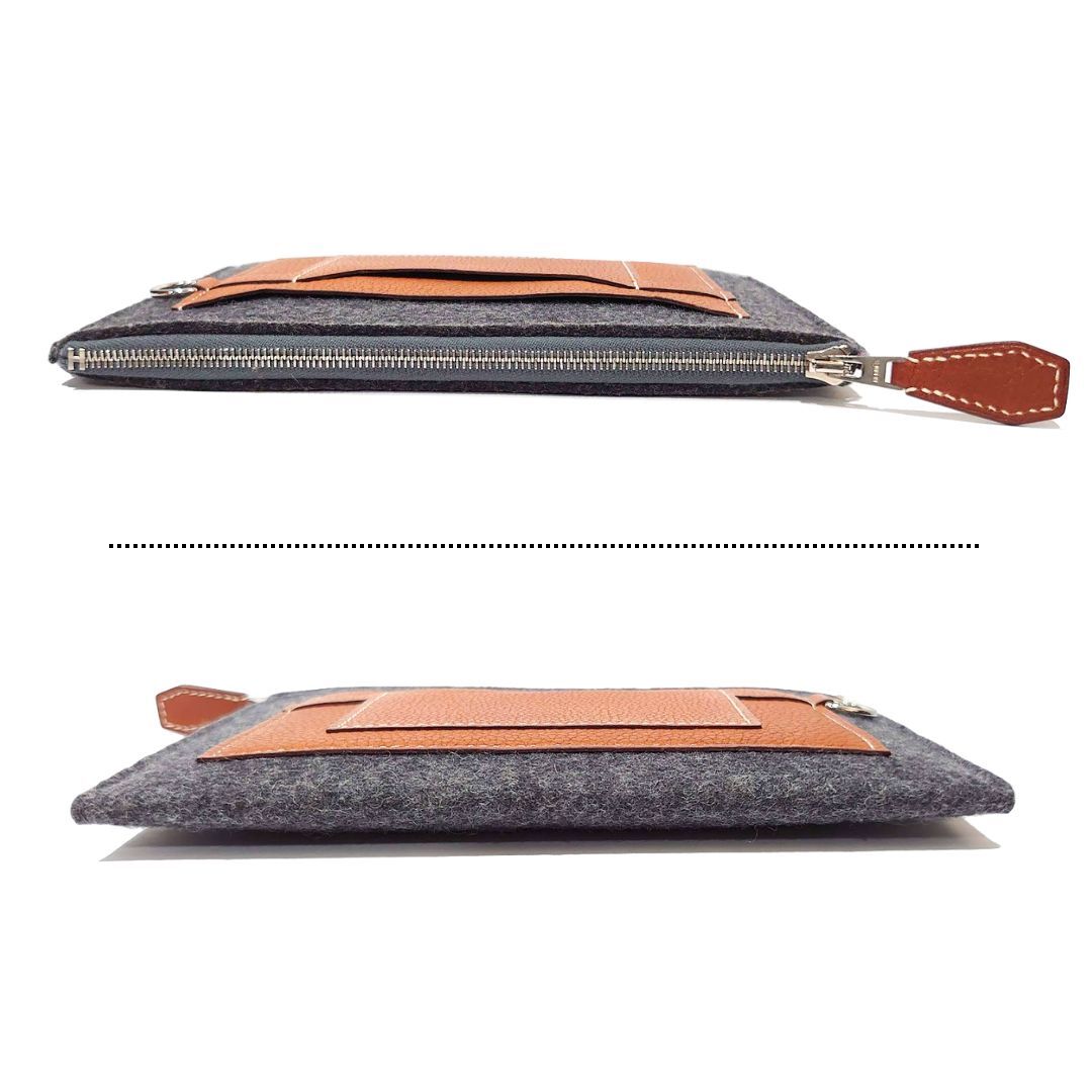 ◎もっちりとした厚みのあるフェルトと、上質なレザーの組み合わせがオシャレなHERMESのフラットポーチ・ミニクラッチバッグです。スマートフォンやアクセサリーなどちょっとした小物を収納出来るサイズで、年齢・性別問わずお使いいただけます。フェルトに目に付く毛玉やヘタリはなく、使用感の少ないアイテムです。