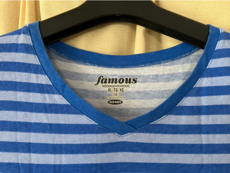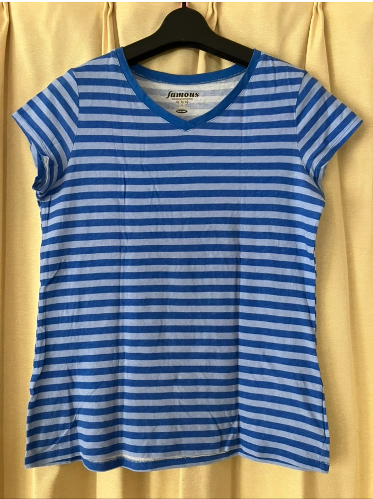 おなじみ 大人気、OLD NAVY ブルー系ボーダーTシャツ サイズXL(14)150/76 です。