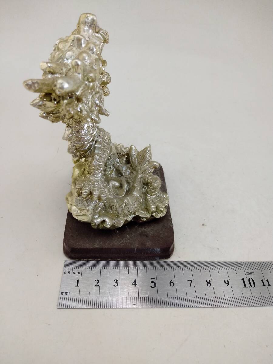 ★銀龍 ドラゴン 置物 金属製 水晶?