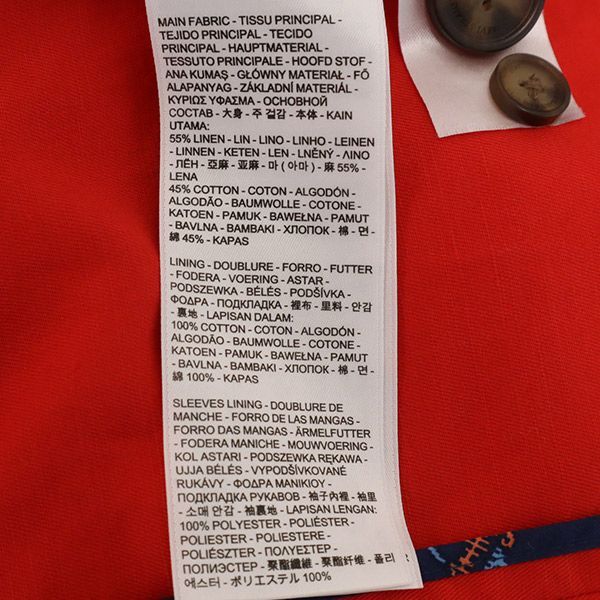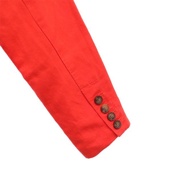 | 詳細 | 未使用タグ付き。一部に裏地が有ります。肩パットが付いています。スペアボタンが大小1つずつ付いています。内ポケットが1つ付いています。ポケットと内ポケットにしつけ糸が付いたままの状態となっております。袖口のボタンは開閉可能です。未使用品ですが、保管品となります。 |