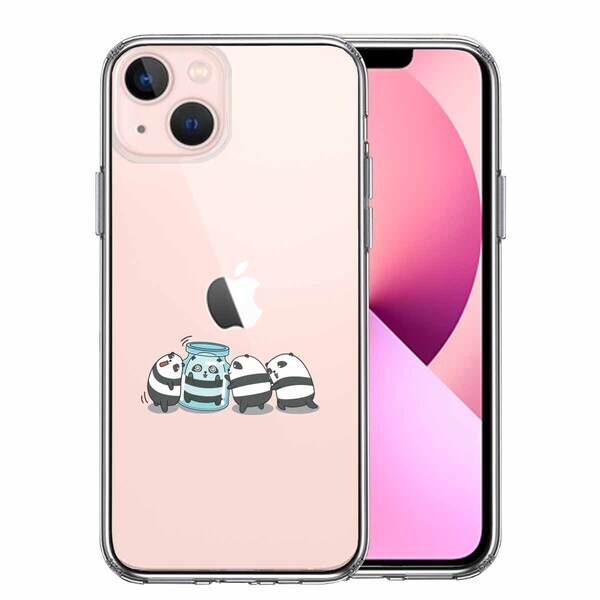 iPhone13mini ケース クリアカプセル パンダ スマホケース 側面ソフト 背面ハード ハイブリッド