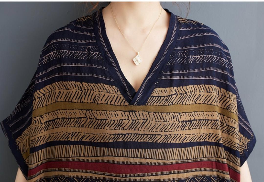◎エスニックな雰囲気漂うボーダーのワンピース