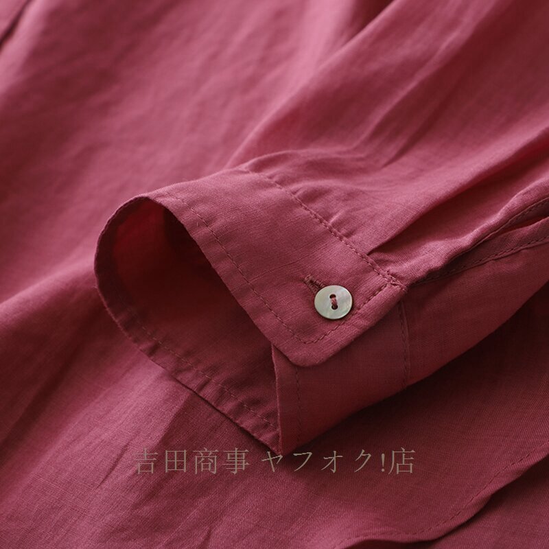 A1121☆新品チュニック トップス カジュアル ブラウス レディース 日焼け 長袖 シャツ 薄手 無地 XL