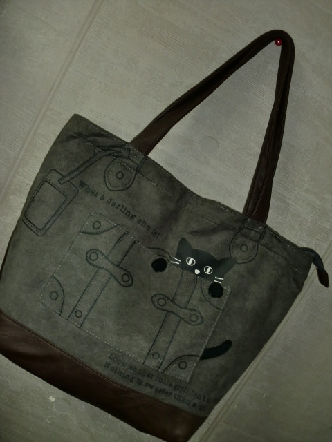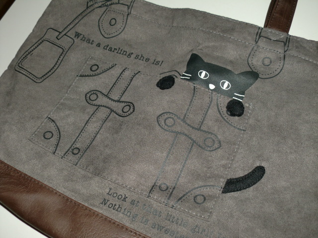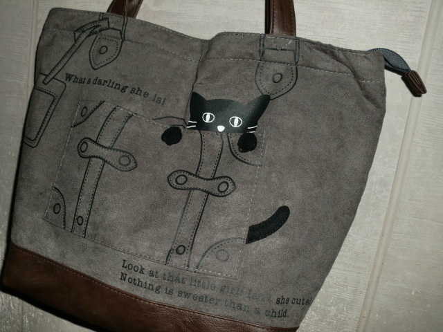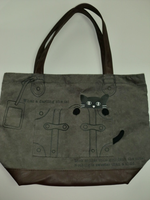ポケットからのぞいた黒猫ちゃんが可愛いバッグです。