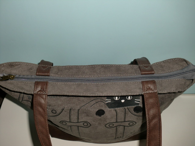 【未使用】黒猫ちゃんバッグ ショルダーバッグ グレー ファスナー開閉