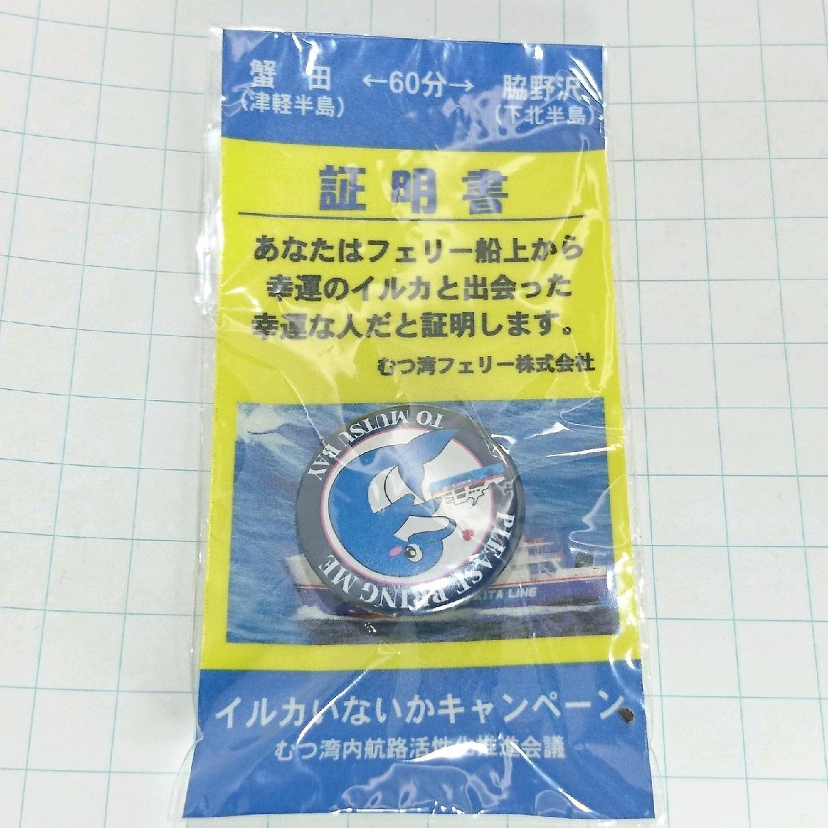 送料無料)未使用 むつ湾フェリー イルカ 缶バッジ 山登り 観光 旅行 記念 山バッジ ピンバッジ PINS ピンズ A24420