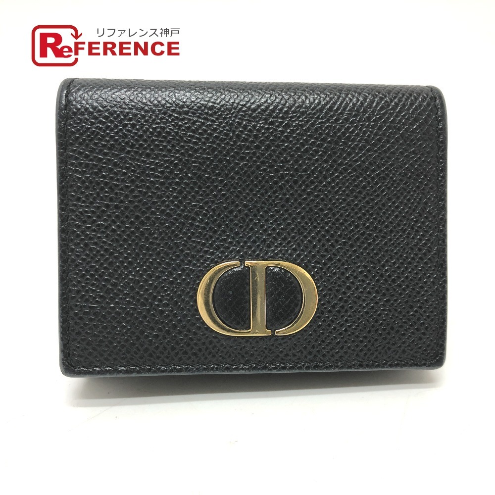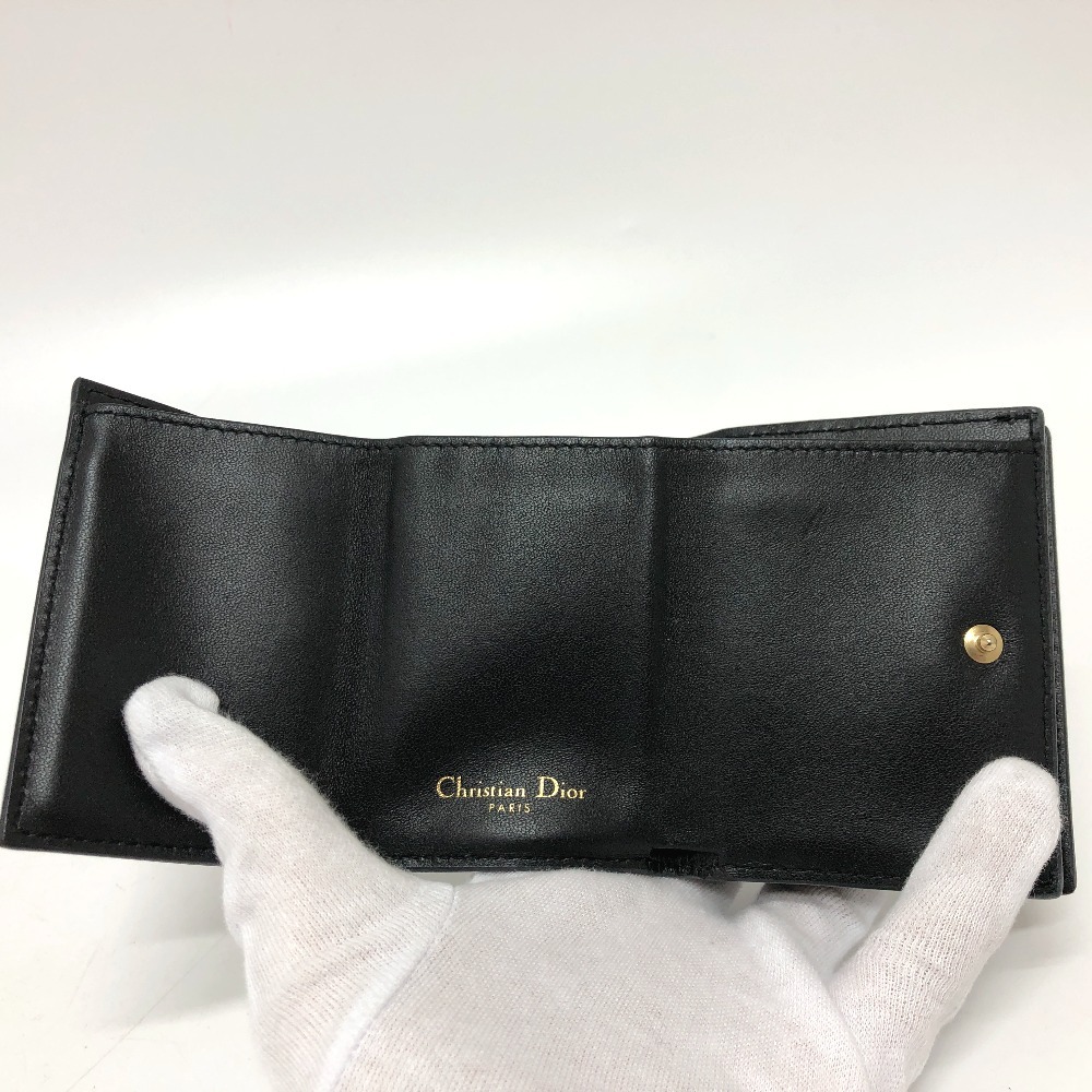 Dior ディオール モンテーニュ コンパクトウォレット ロゴ 3つ折り財布 ブラック レディース【中古】
