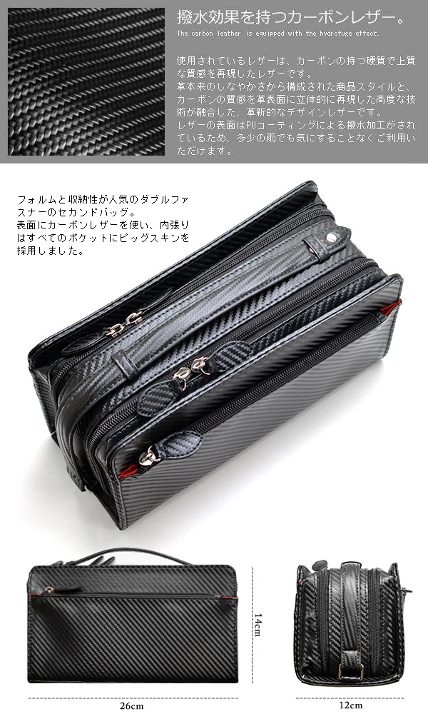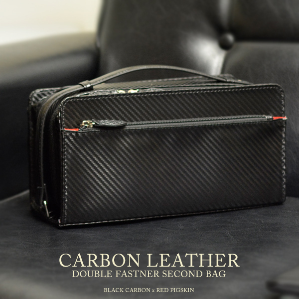 【1点限り赤字大特価】【送料込み】【期間限定】【新品】【税込み】カーボンレザー ピッグスキン Wファスナー式 BOX型 セカンドバッグ