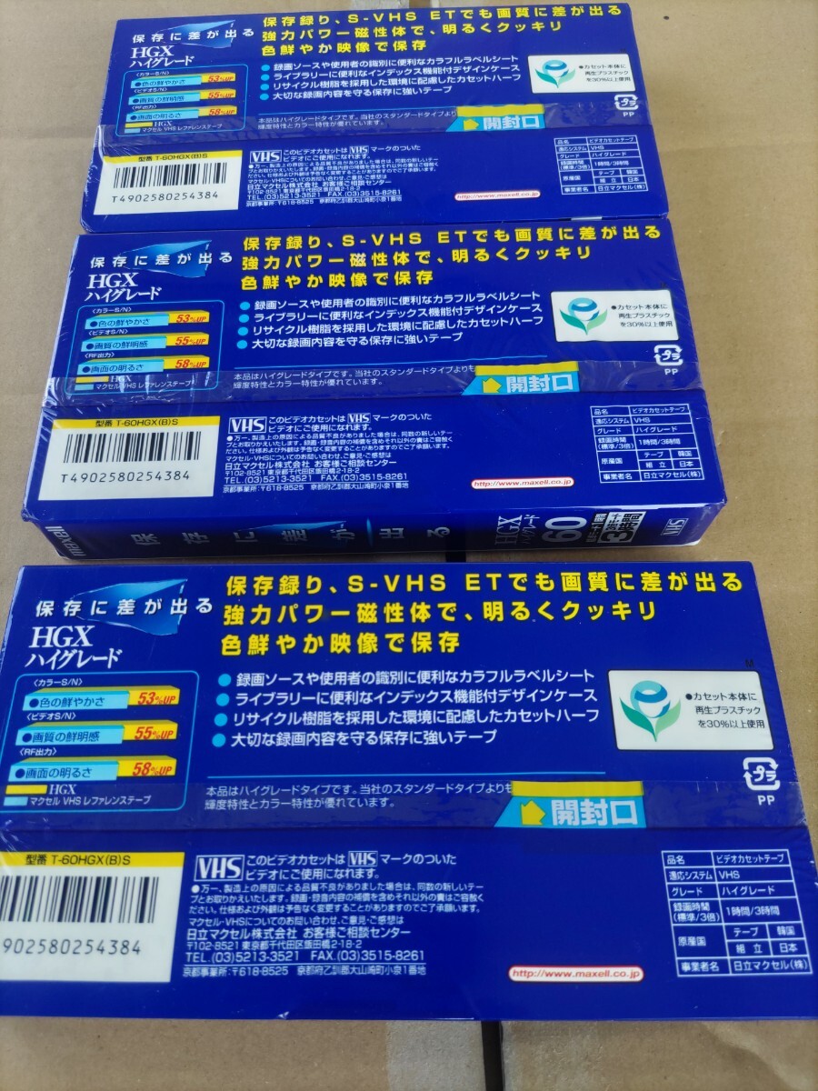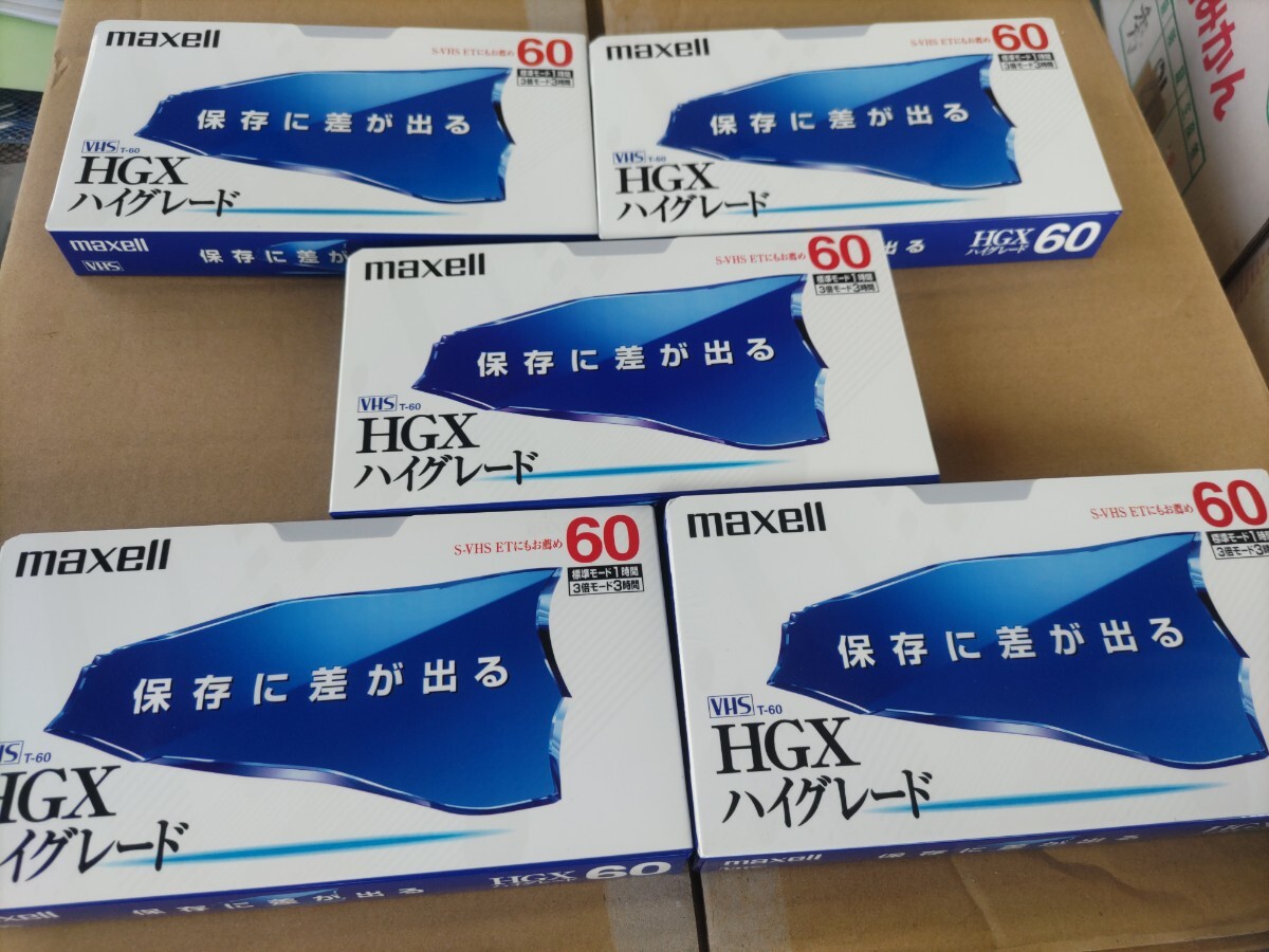 未開封品 VHS ビデオテープ Maxell T-60 HGX 新品 未開封 ハイグレード 5本セット まとめ売り ダビング 録画 ドラマ 映画