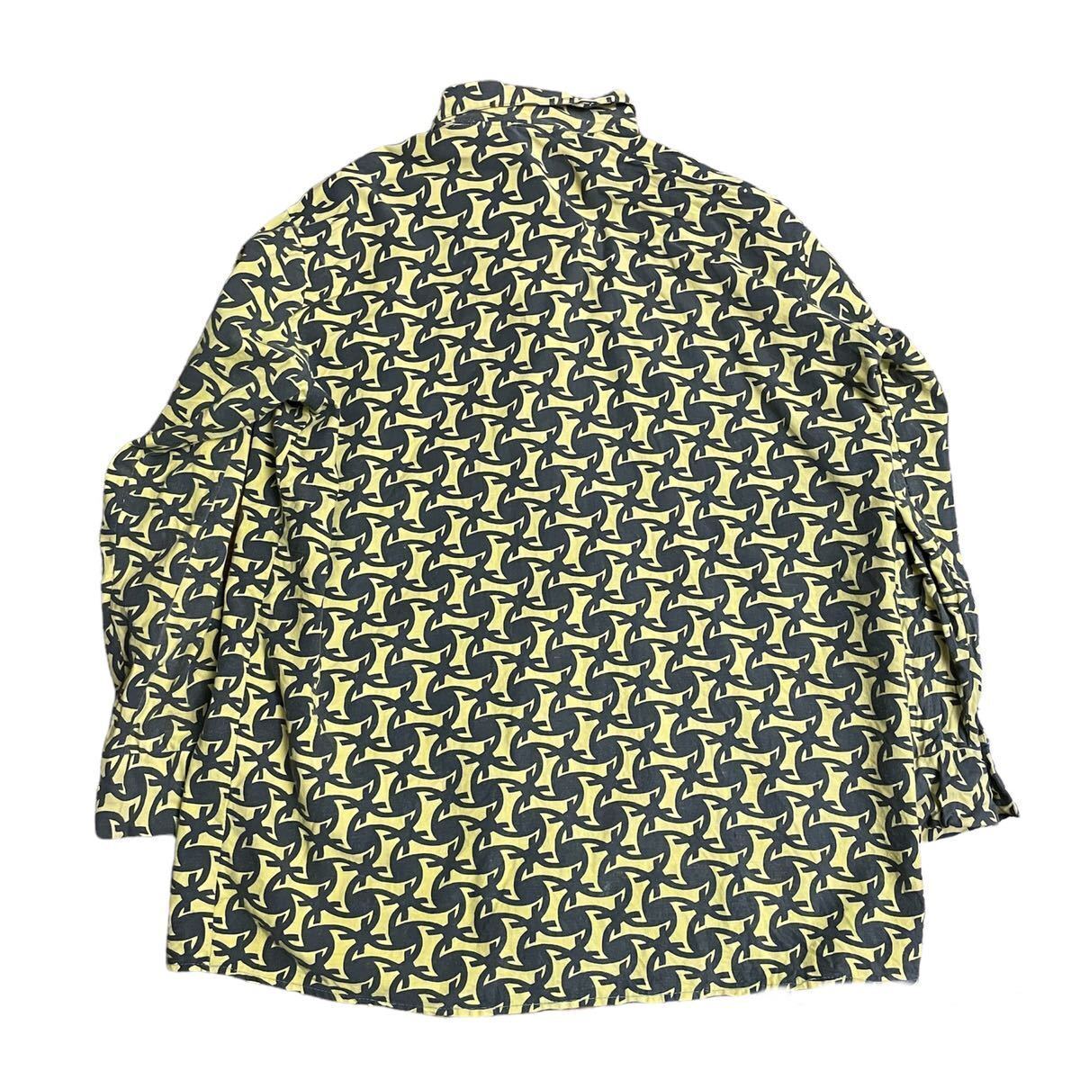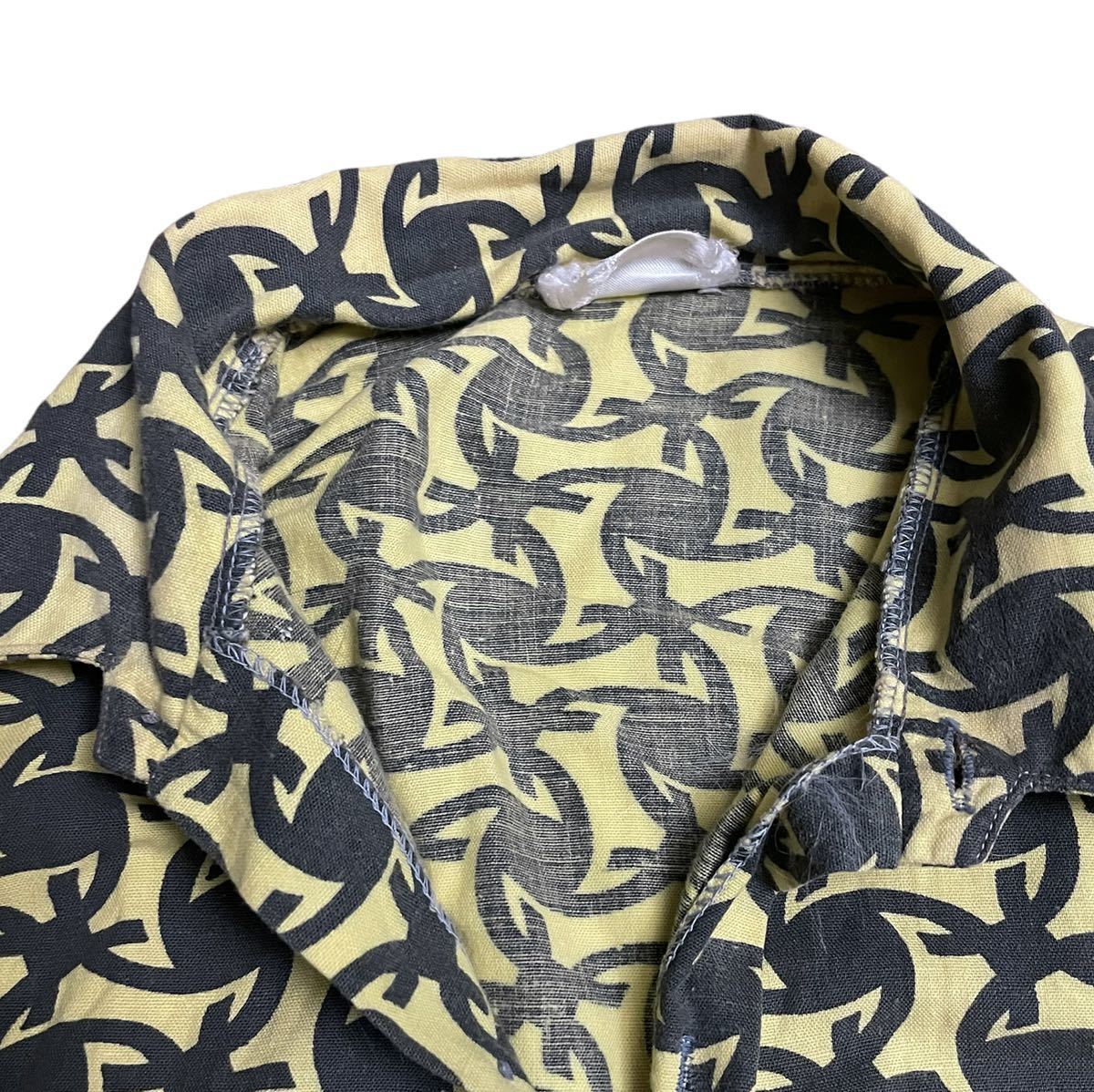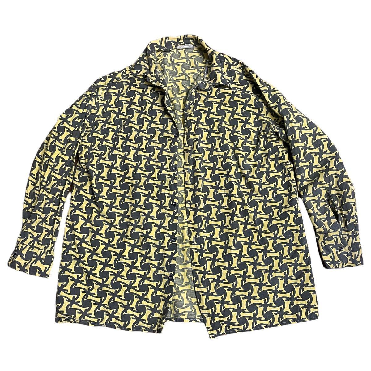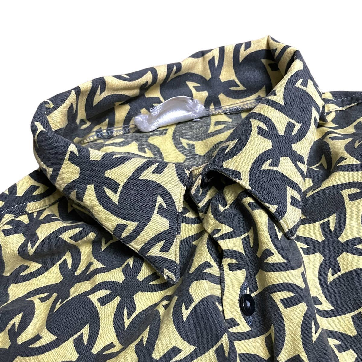 80s ビンテージ 総柄 シャツ 黄×黒 ユーロ コットン アフリカンバティック vintage