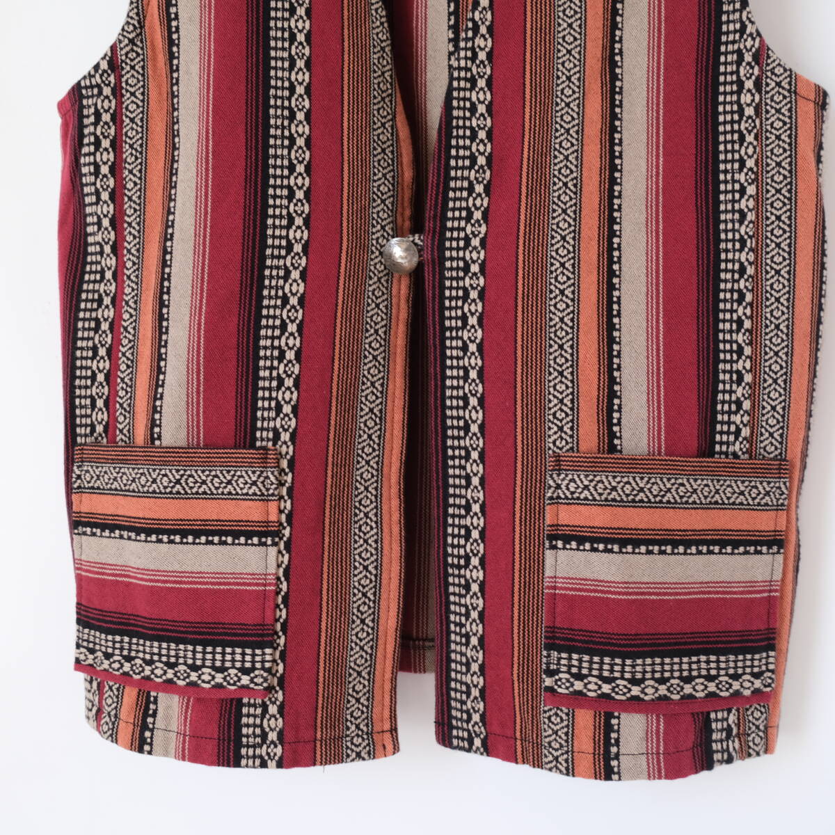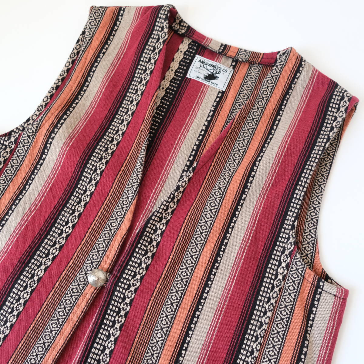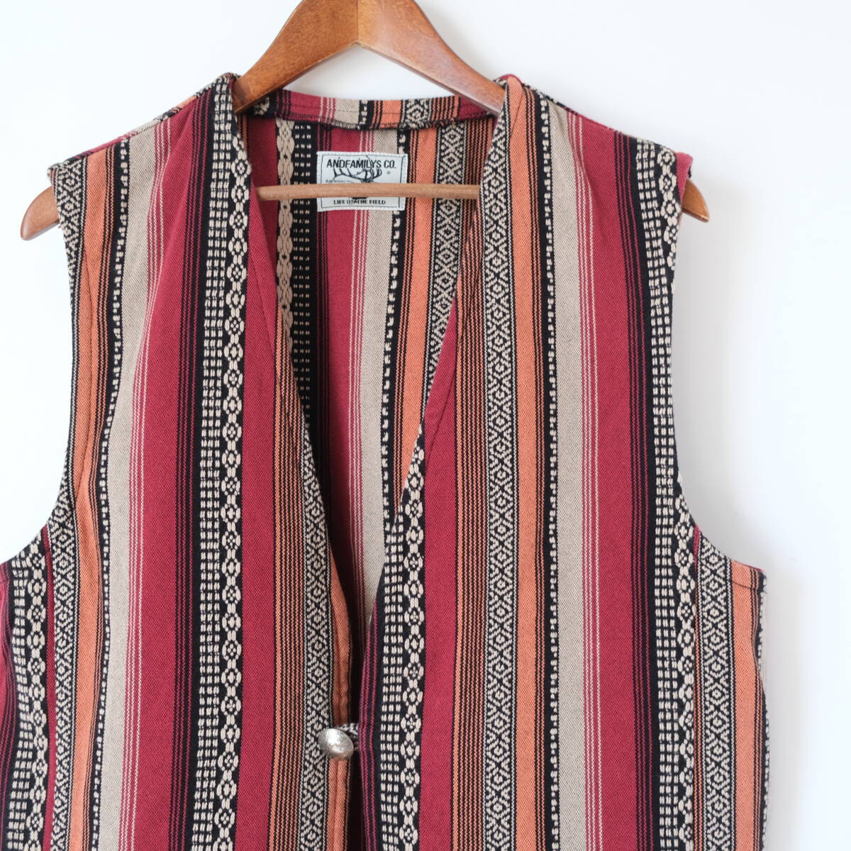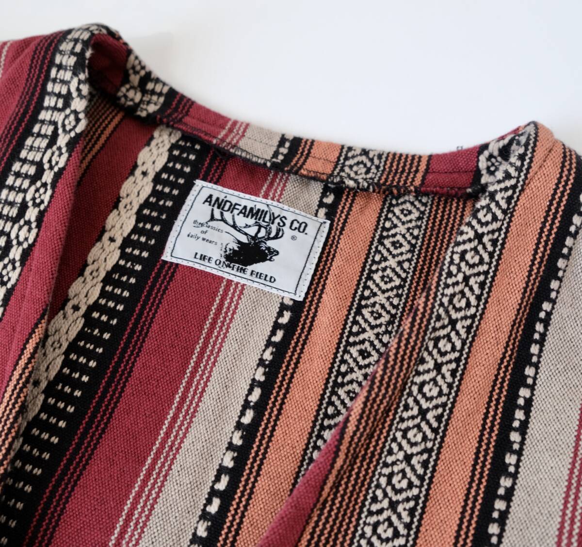 【 ANDFAMILY'S 】アンドファミリー 尾州 ジャガード織り コットン ネイティブ ラグ ベスト NATIVE RAG VEST/ レッド系 / 日本製 andfamily