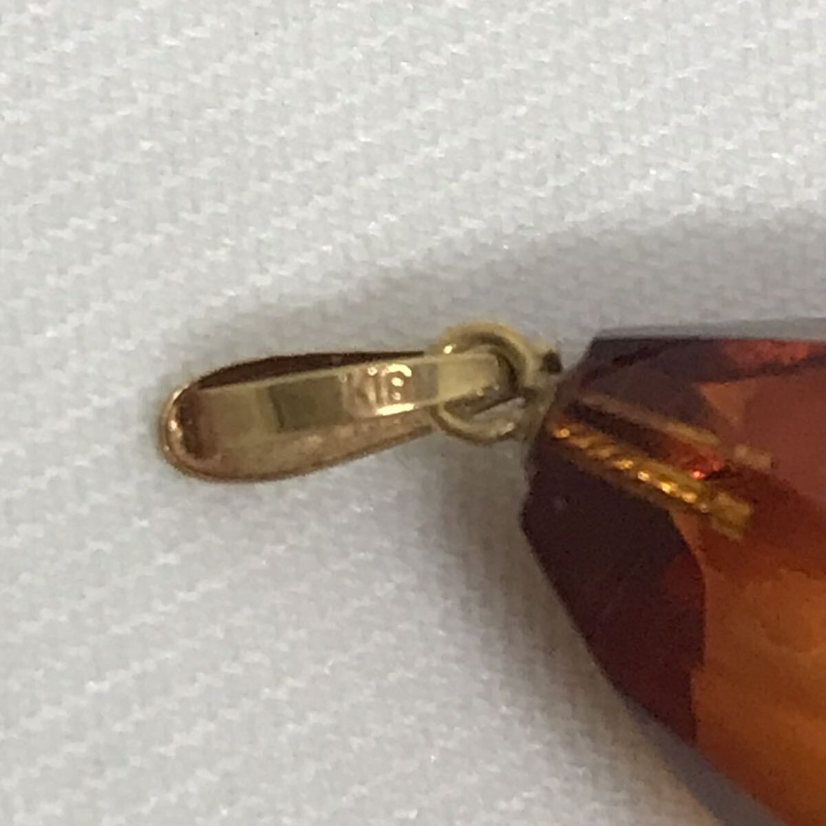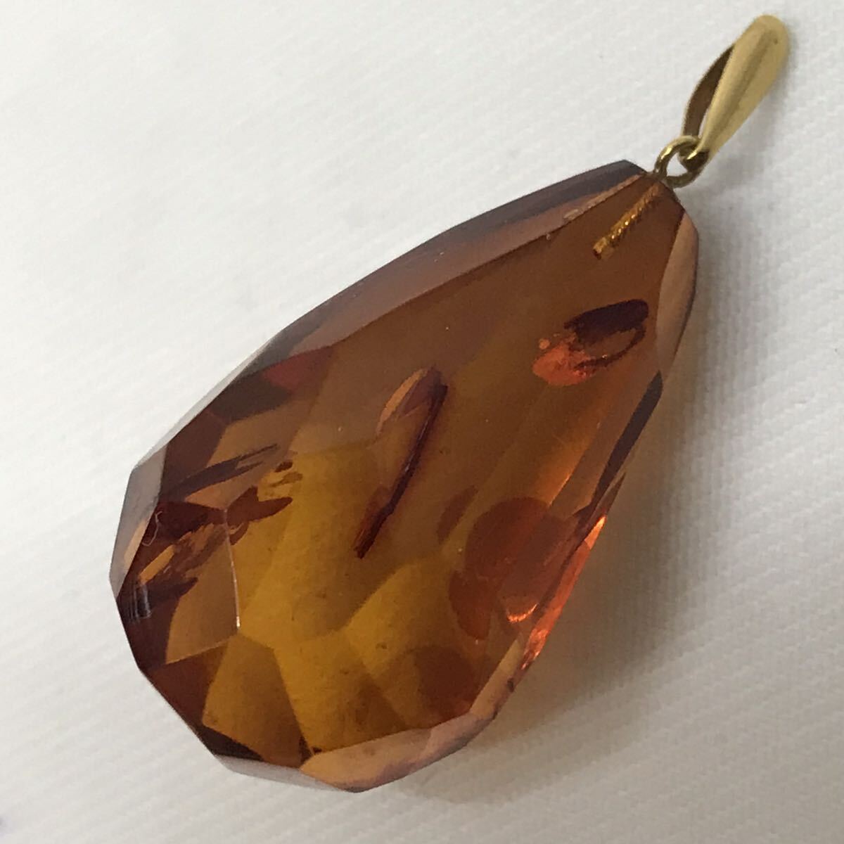琥珀 コハク アンバー ペンダントトップ k18刻印アンティーク 約2.5cm