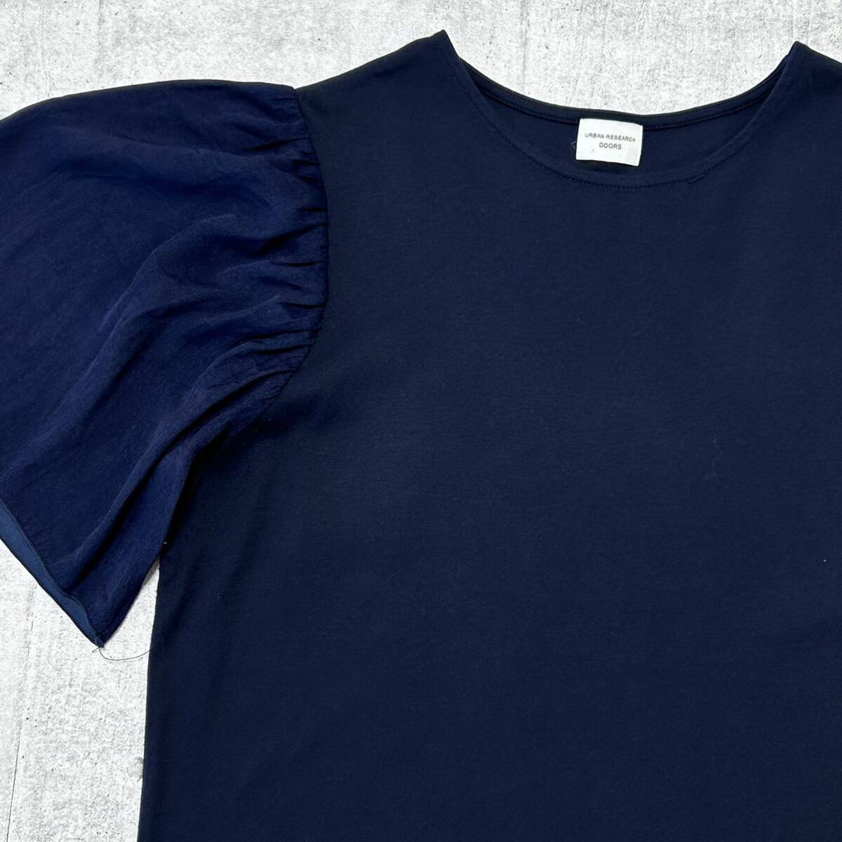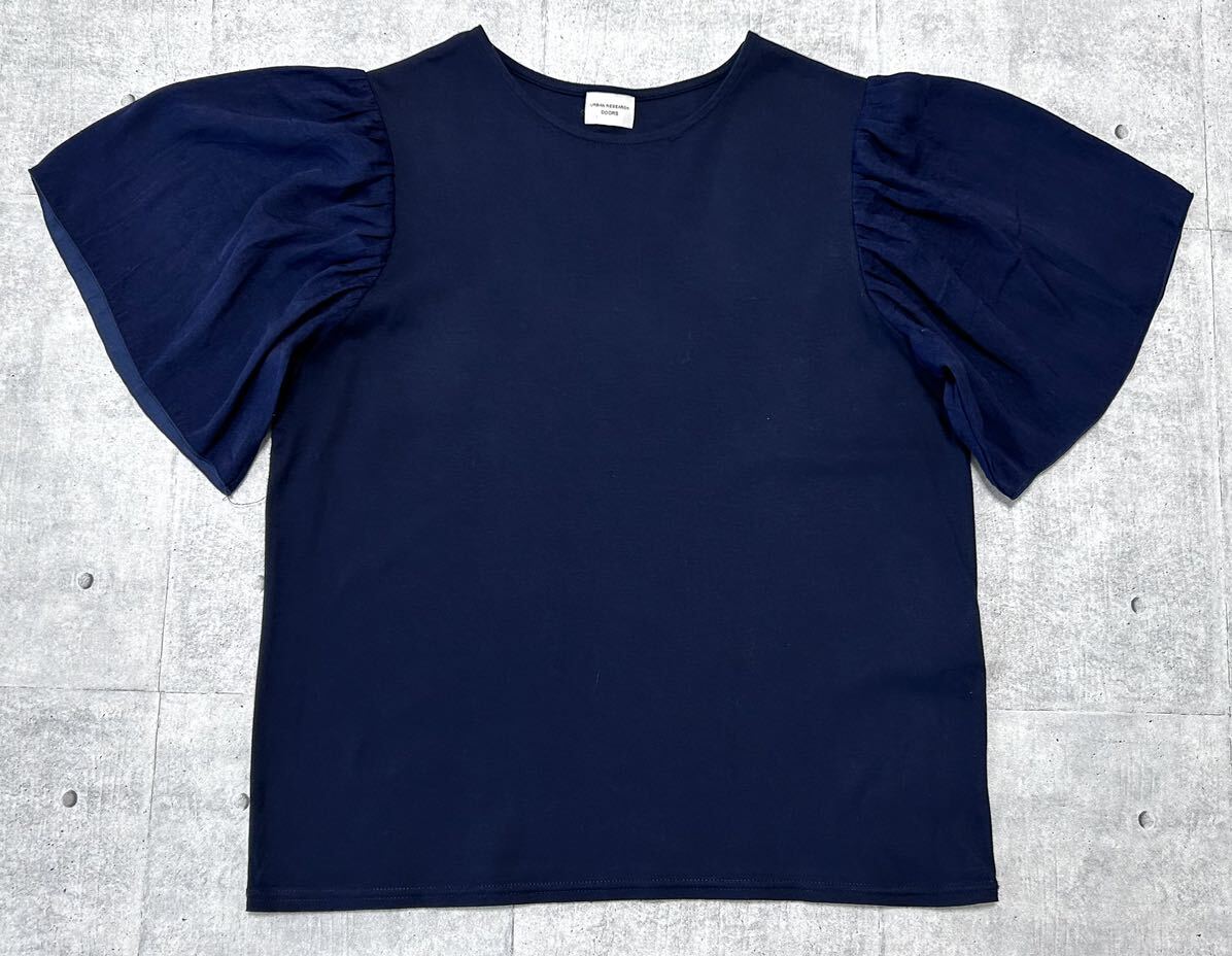 美品 URBAN RESEARCH DOORS カットソー アーバンリサーチ  ドアーズ ギャザーフレアスリーブプルオーバー 素材切り替え 早3965