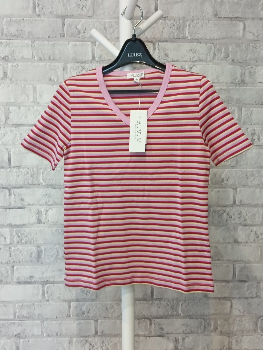 M 新品 AVV ミッシェルクラン ボーダー柄 Tシャツ ピンク系