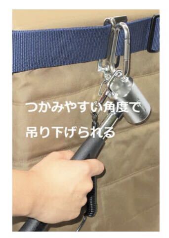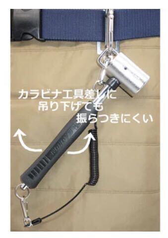 特長カラビナ工具差しに片手でワンタッチ脱着できる大型フック付き。