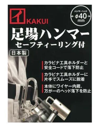 主な用途組立作業・解体作業カクイ (KAKUI) 足場ハンマー セーフティーリング付き (カラビナ工具差しワンタッチ脱着タイプ) ハンマーヘッドΦ40mm M-40 シルバーブラ