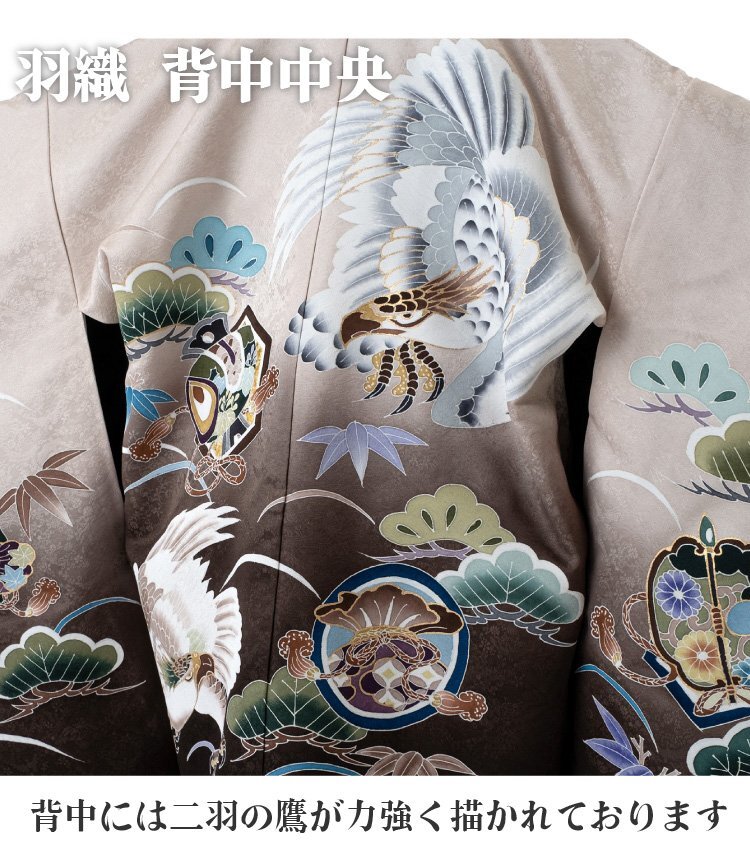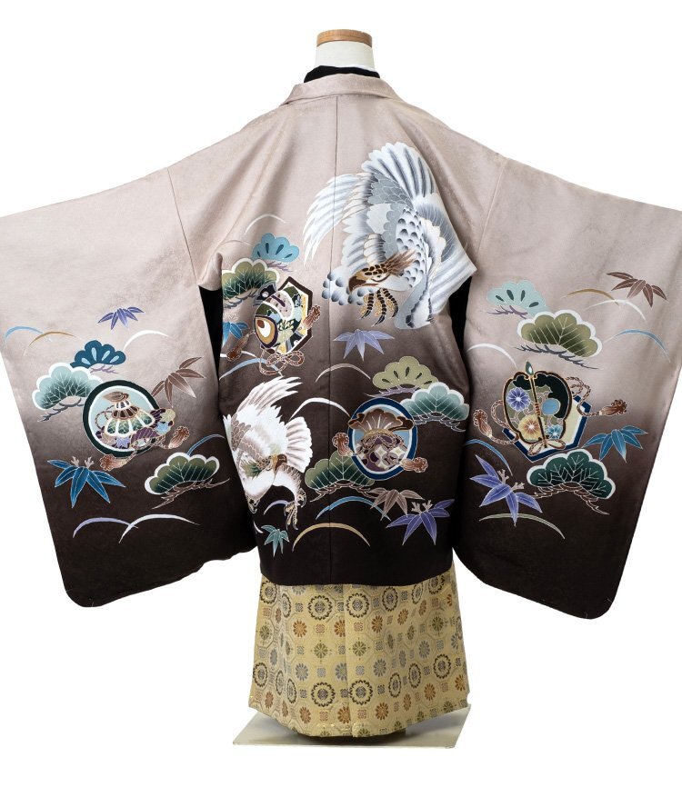 | 着物サイズ | 【着物サイズ】 着物身丈:約 100cm 着物裄丈:約 54cm 着物袖丈:約 57cm 羽織身丈:約 65cm 【袴サイズ】 袴紐下:60cm(適応身長 約100~112cm) 【雪駄】 約 19.5cm |