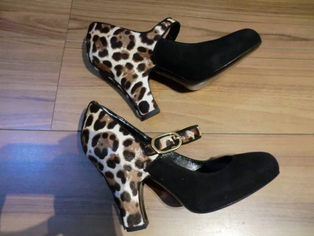 約6万 36 ドルチェアンドガッバーナ 本物 靴 23.5cm 黒 茶 未使用 美品 イタリア製 D&G ヒール 本革 レザー 豹柄 レオパード ヒョウ柄