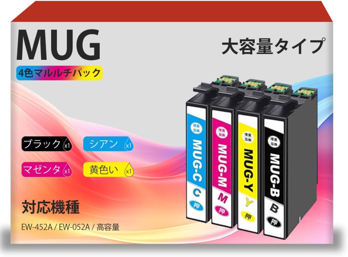 MUG-4CL 互換 インクカートリッジ 4本セット 高性能チップ付き 大容量 Epson MUG-4CL 対応型番 EW-452A EW-052A (BK/C/M/Y)