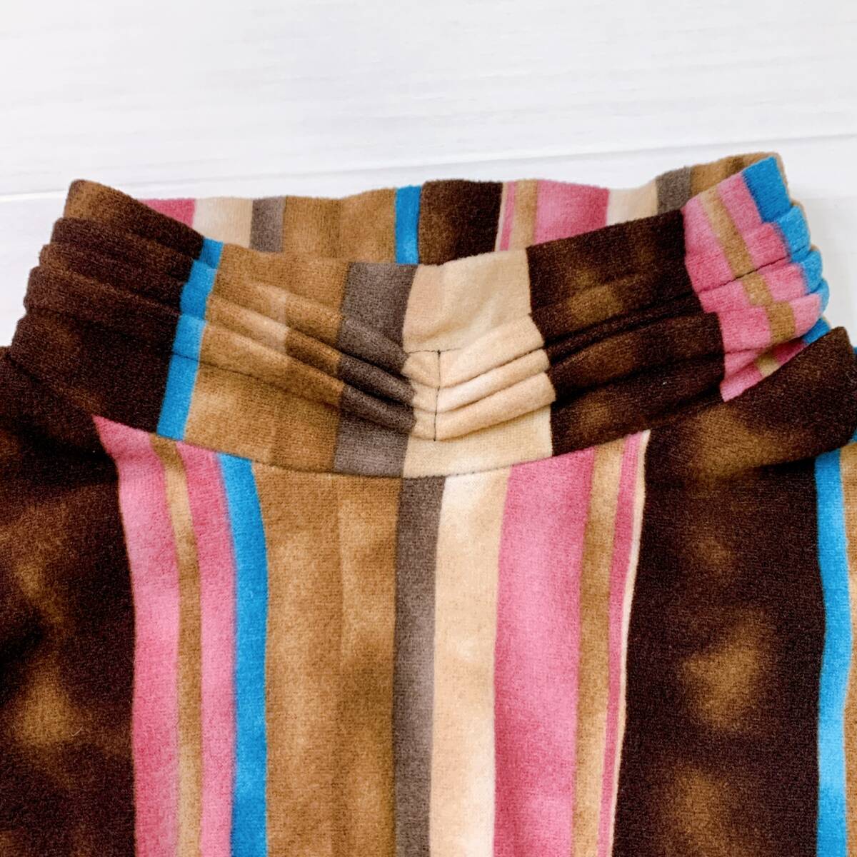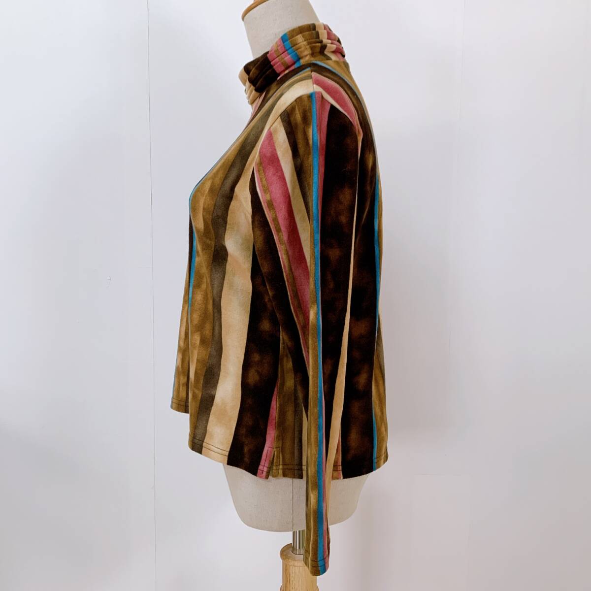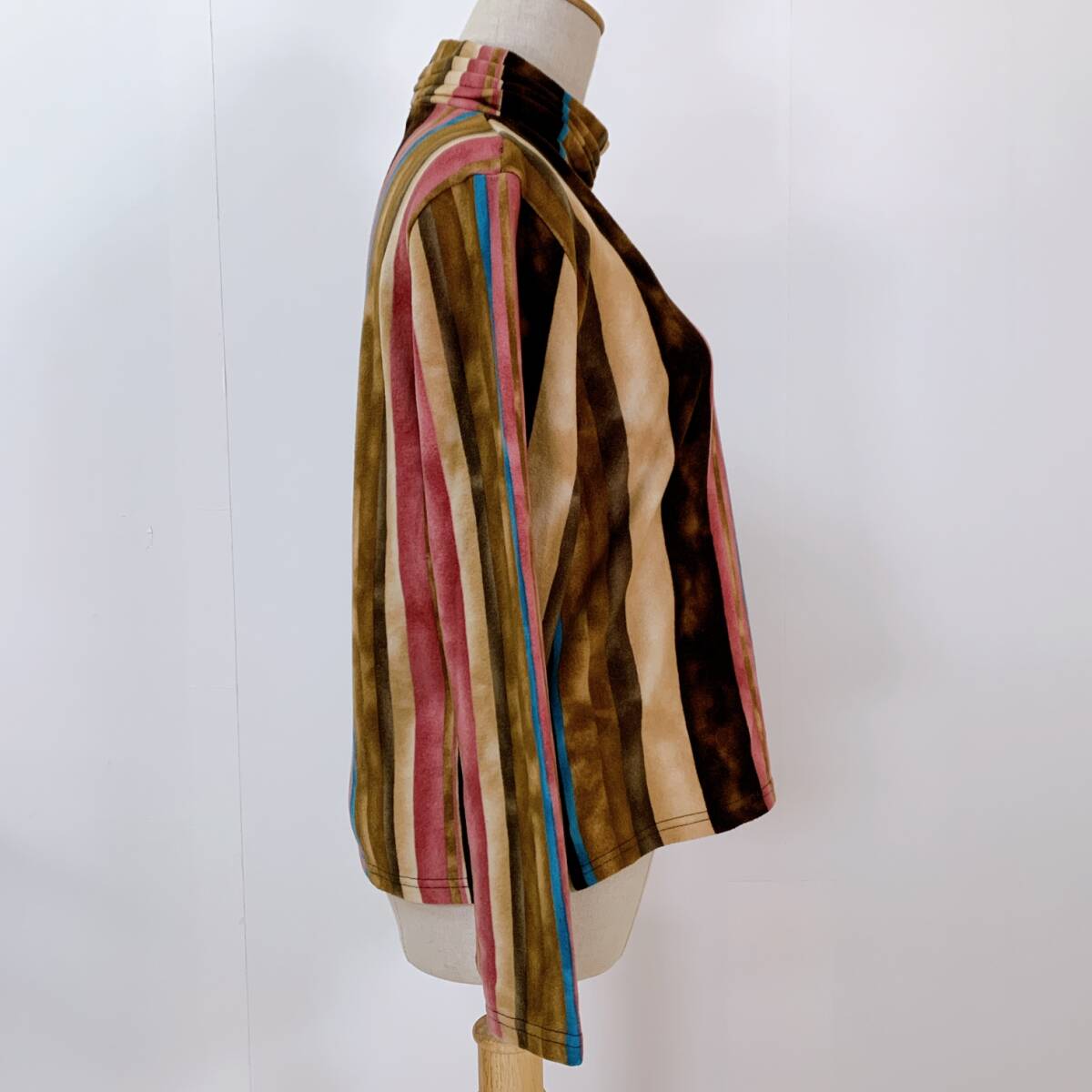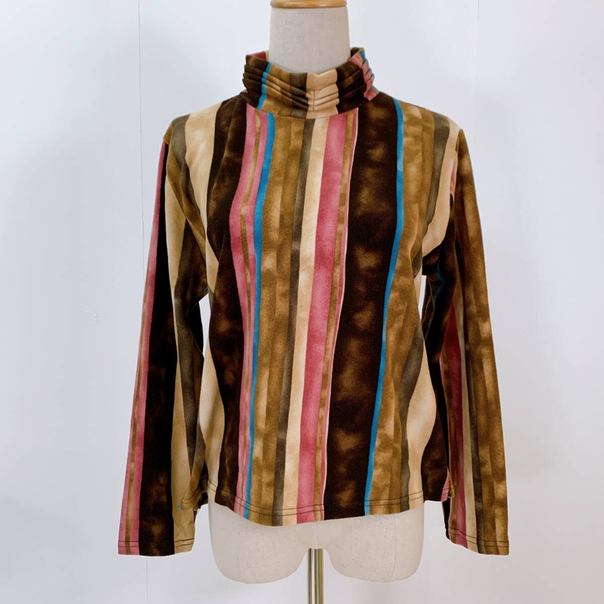 YH1156 Lafon27 レディース ストライプ柄 長袖 カットソー マルチカラー M~Lサイズ カラフル サイドスリット ハイネック お洒落 万能 USED
