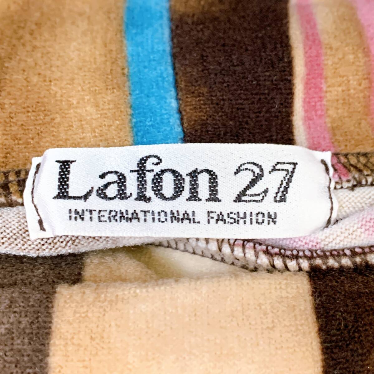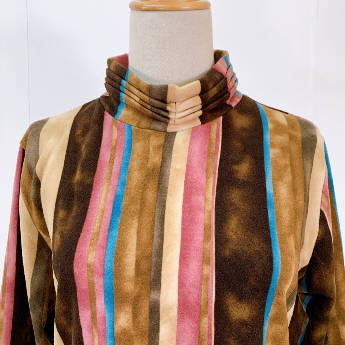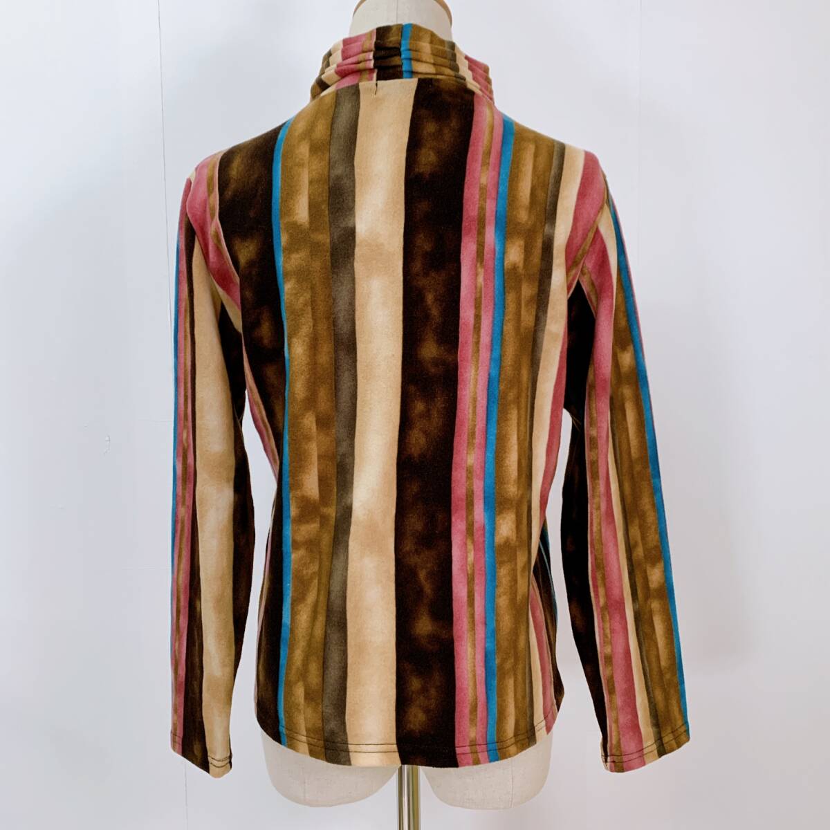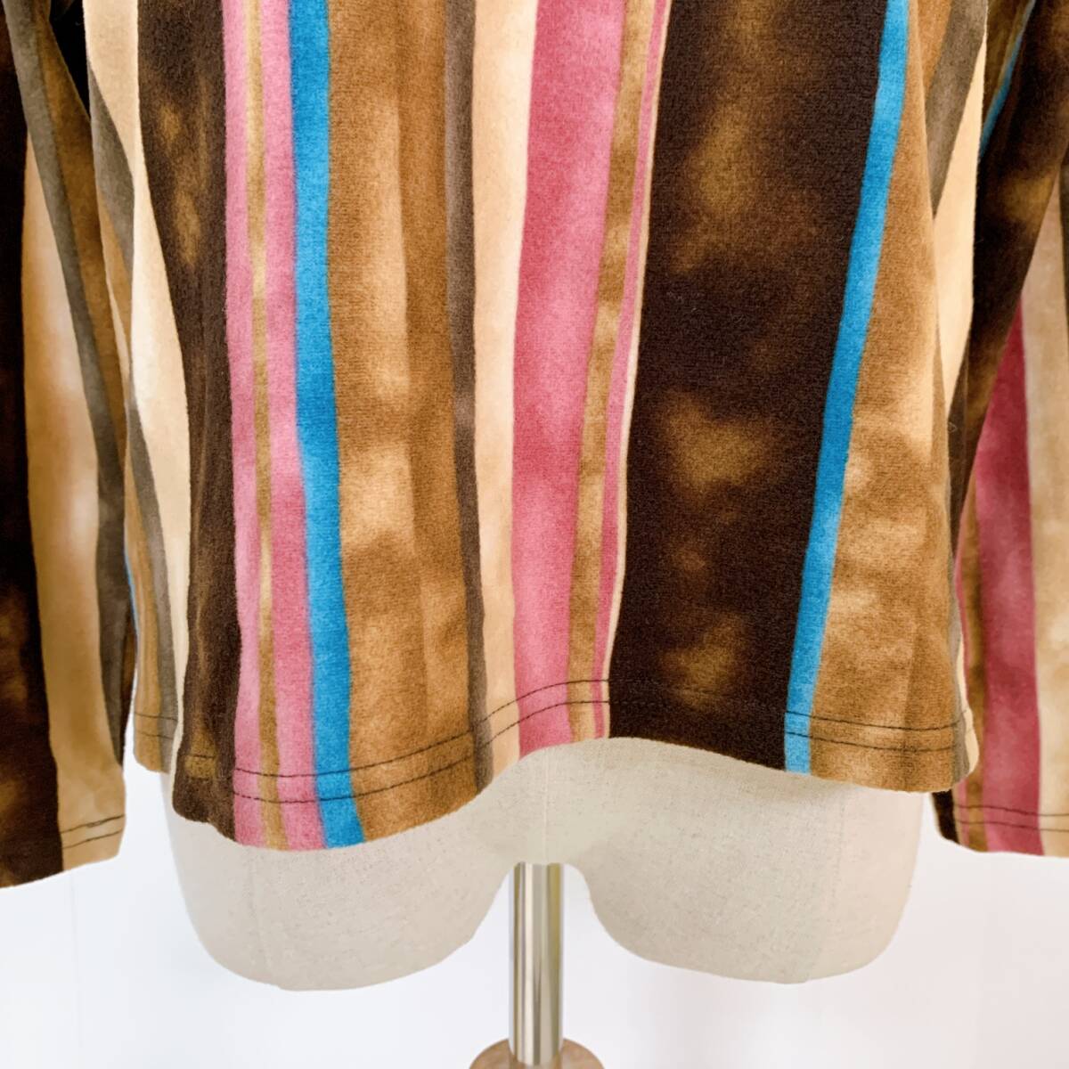 YH1156 Lafon27 レディース ストライプ柄 長袖 カットソー マルチカラー M~Lサイズ カラフル サイドスリット ハイネック お洒落 万能 USED